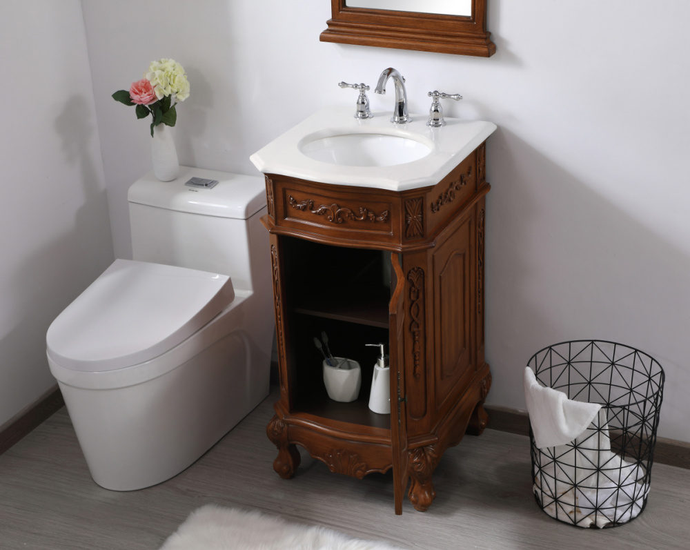 19 inch Single Bathroom vanity in teak with ivory white engineered marble