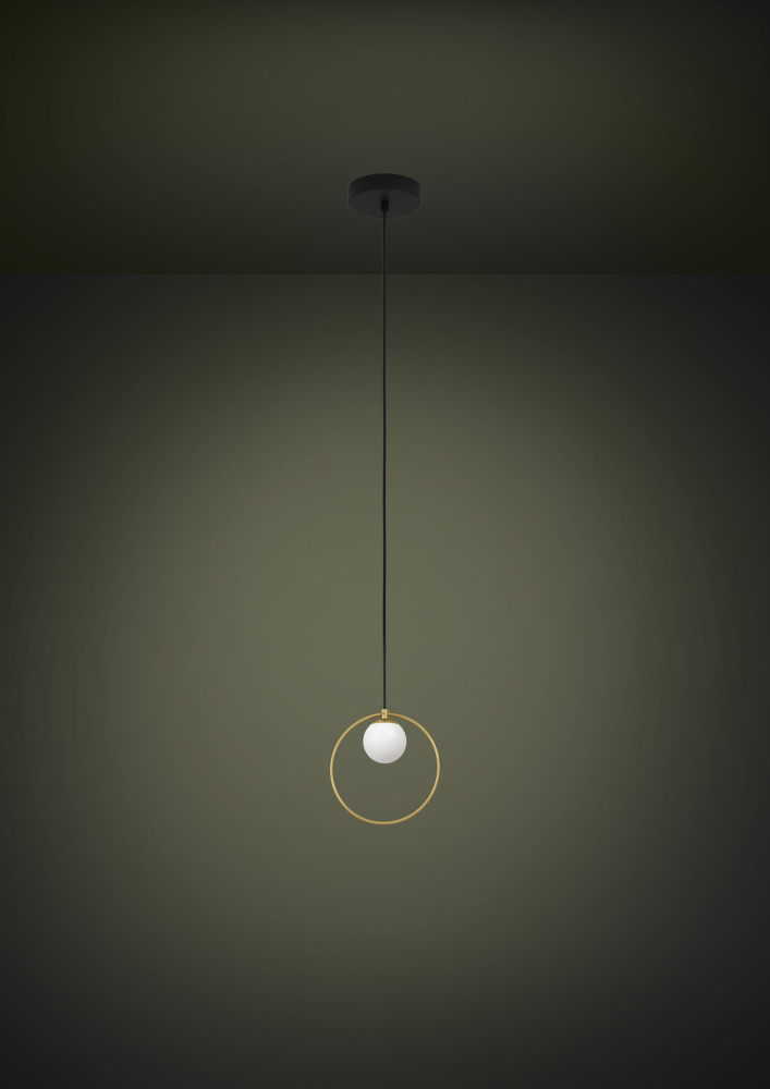 1 LT LED Mini Pendant w/ Black & Shiny Gold Finish & White Sphere Shade