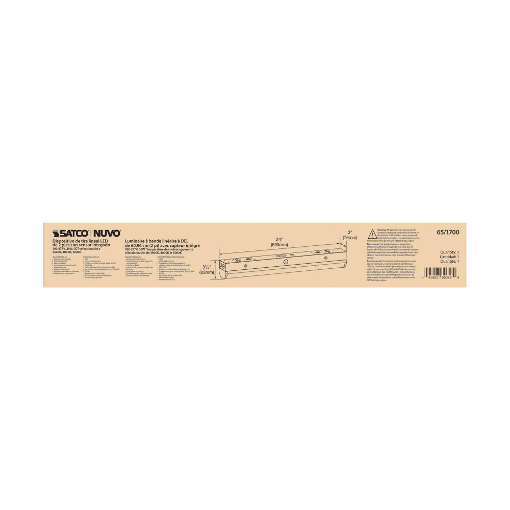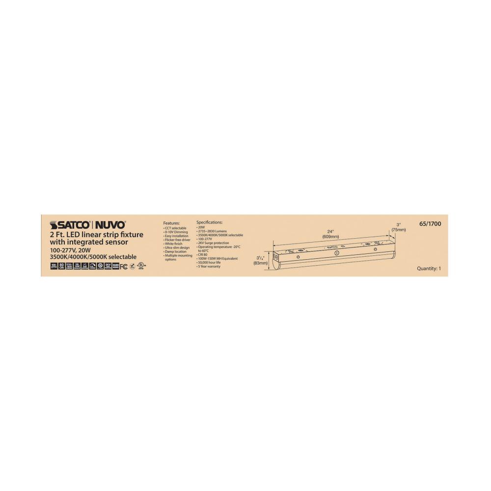 The SATCO NUVO 65-1700 LED 2-foot Linear Strip Fixture features an integrated microwave sensor for added energy efficiency and savings. With 3-CCT selectable options - 3500K, 4000K, 5000K - the user can tailor the lighting to their specific needs and prefe