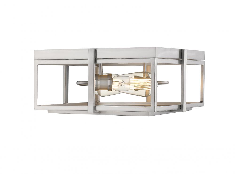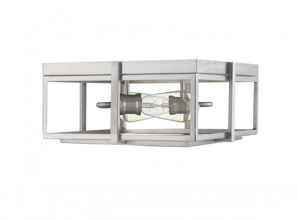 Full of clean lines, this two-light ceiling light features a geometric silhouette. Brushed nickel streamlines the open square-like frame.
