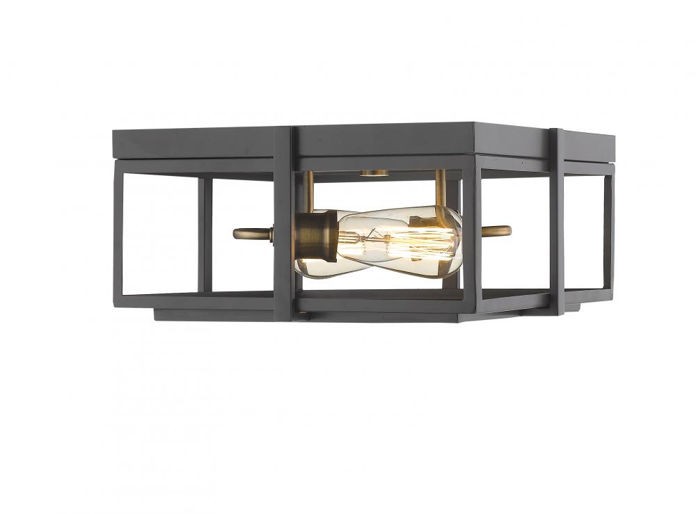 Radiate warmth from the bronze and heritage brass finish of this two-light ceiling light. The geometric silhouette showcases modern, clean lines.