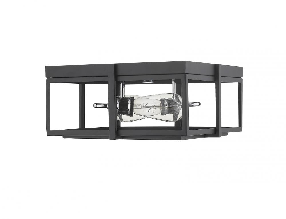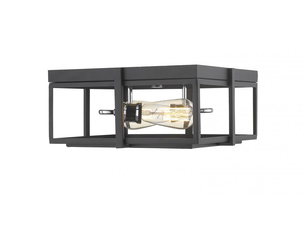 Combine the sleekness of shiny chrome and modern geometric details in this two-light ceiling light. Contemporary in style and hue, the open lines of the frame feature a clean matte black finish.