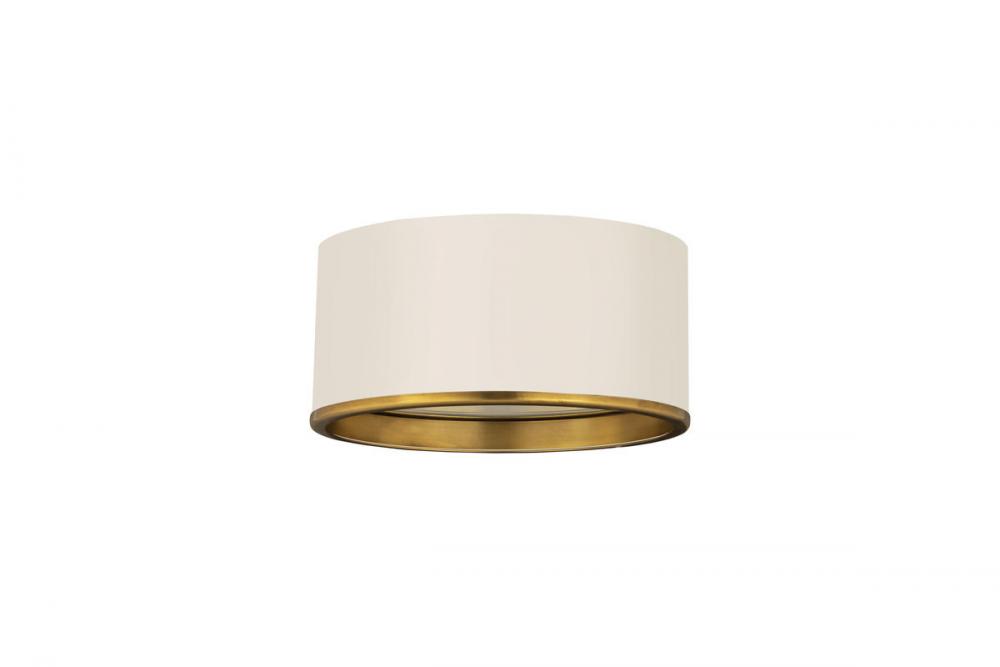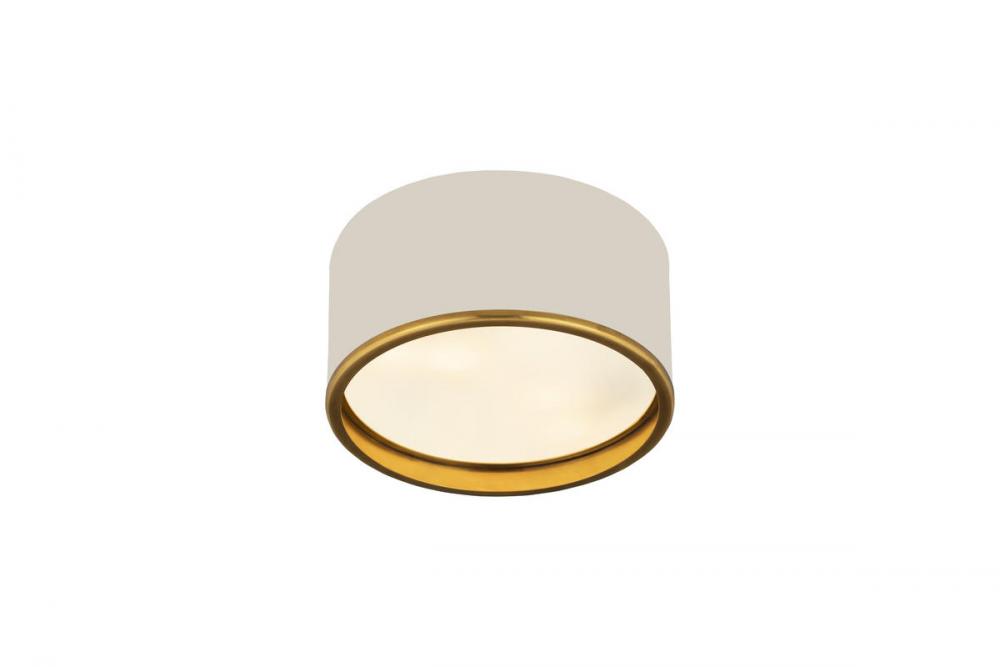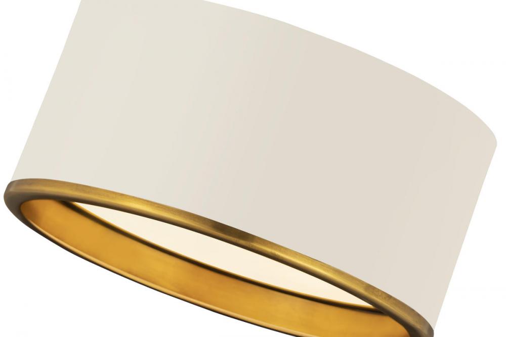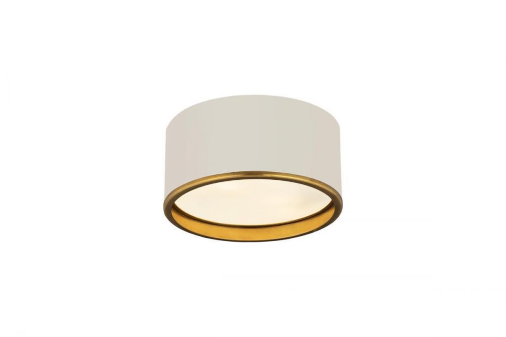 This two-tone metal flush mount light presents a sleek and smooth impression. Perfect for a hallway, home office, or small foyer, this matte white lamp with rubbed bass trim is simplistic yet stylish.