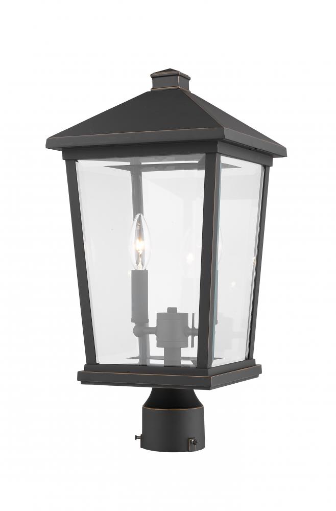 Attention to detail yields a tasteful look in this traditional post lantern light. Top a tall or short base with this elegant light that features a warm rubbed bronze finish and a clear beveled glass shade.