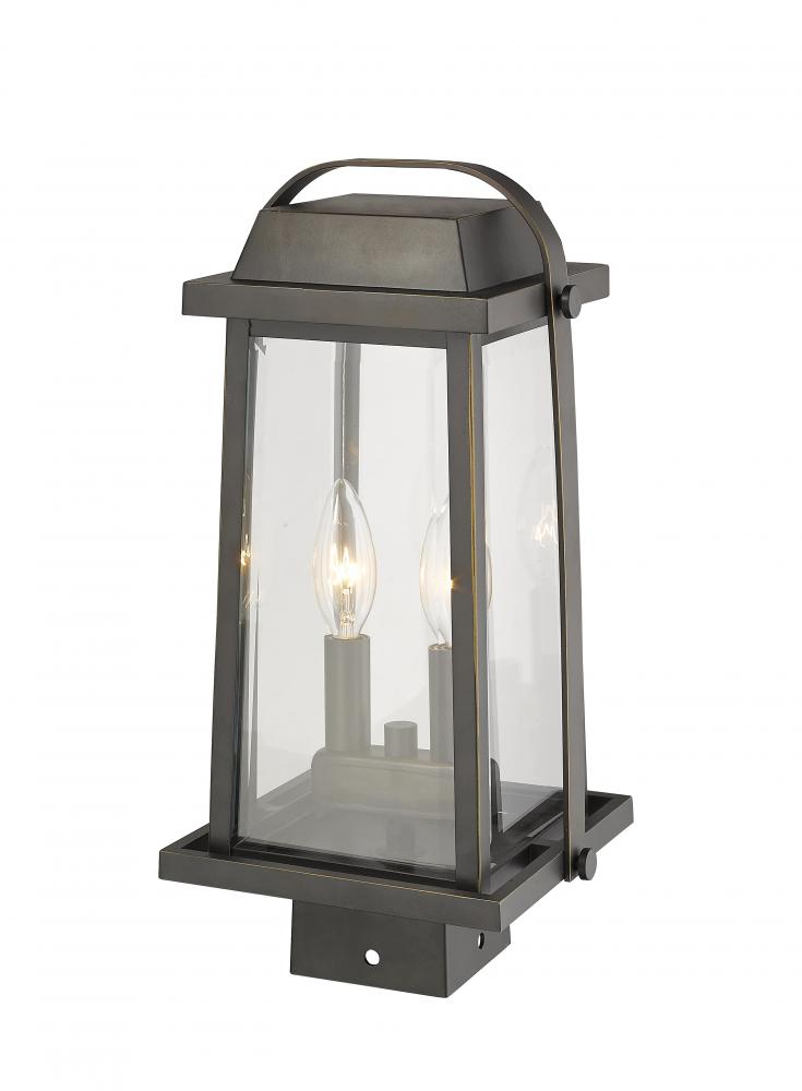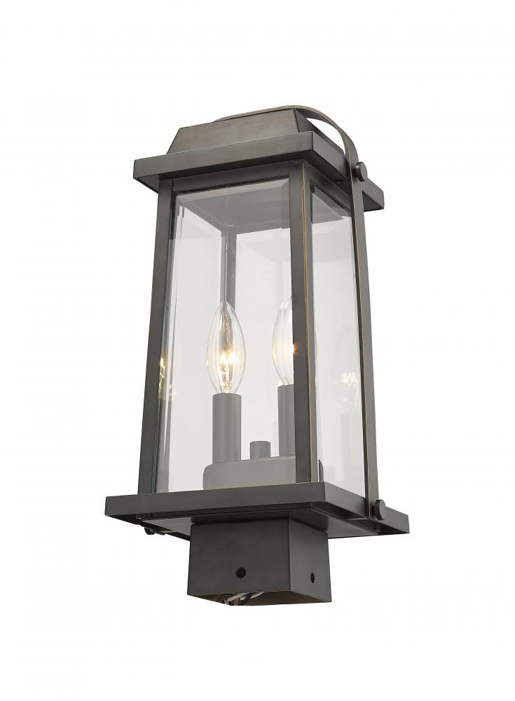 Designed to fit a square post, this outdoor post light lends a touch of classic character to a patio or walkway. An oil rubbed bronze finish complements a familiar lantern silhouette, while two lights behind clear beveled glass ensure exceptional illumination.