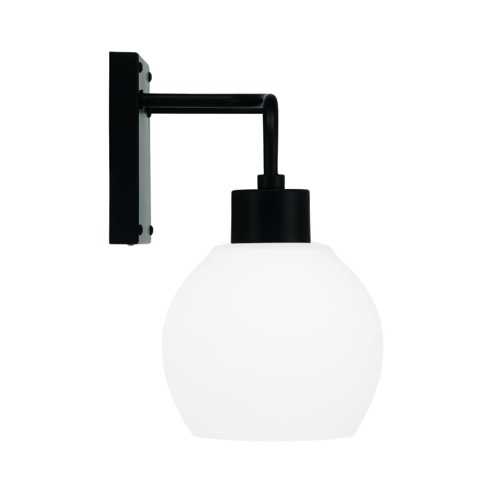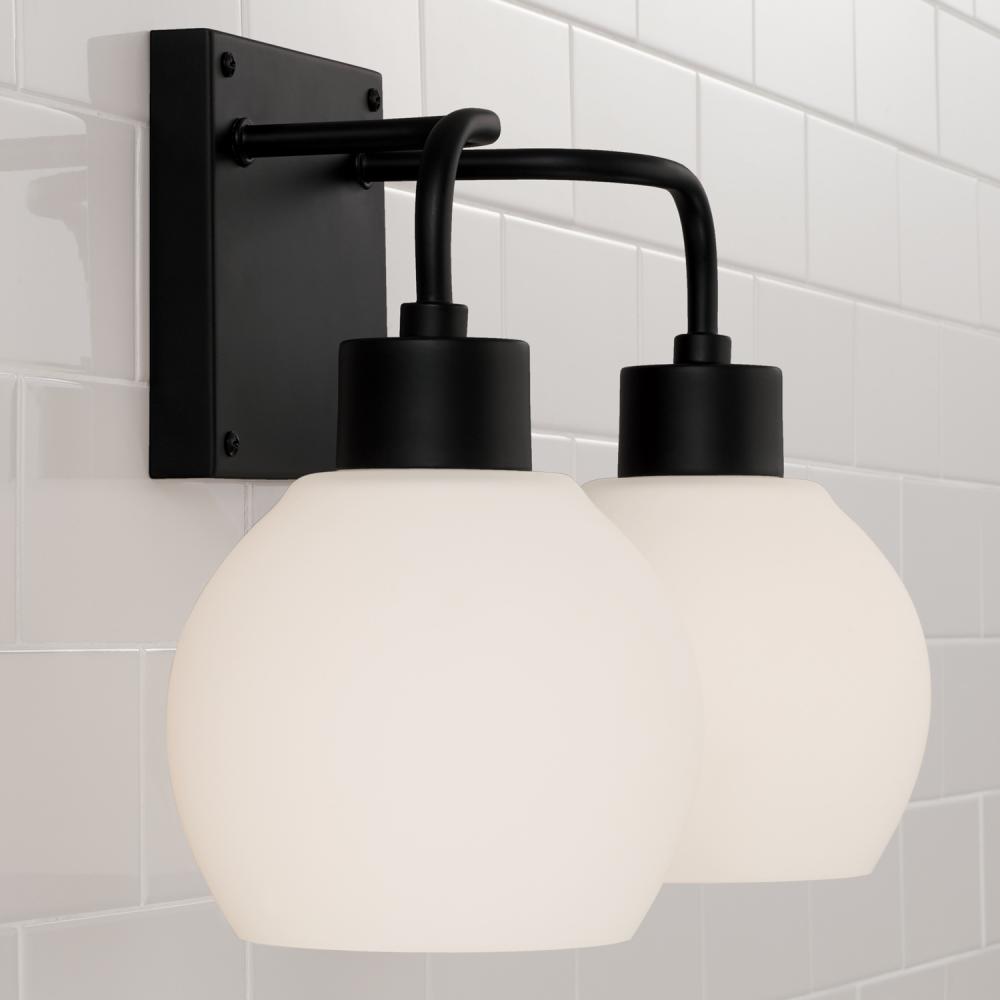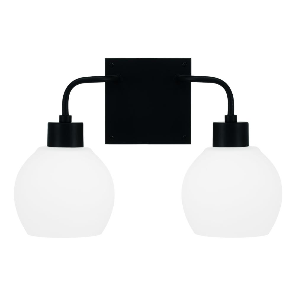 15"W x 9.75"H 2-Light Vanity in Matte Black with Soft White Glass Globes