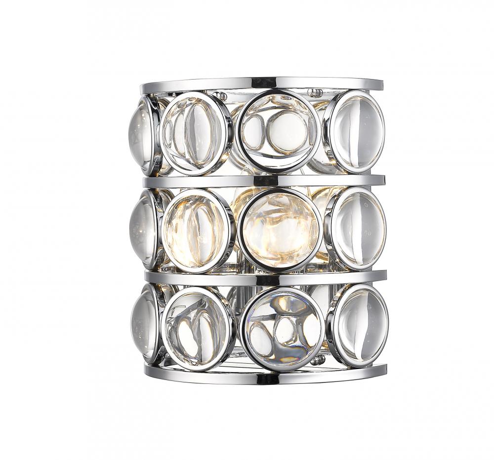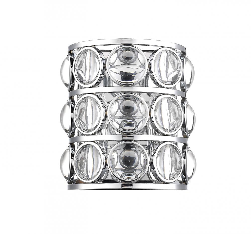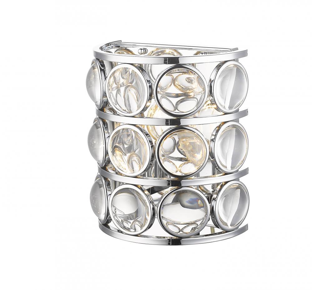 Stunningly sleek, this rounded light shade is adorned with crystal accents. The open chrome frame is full of clean lines and rounded geometric pieces.