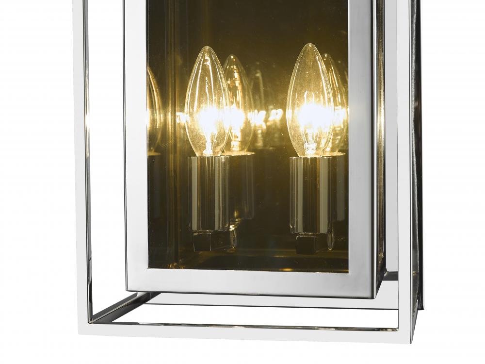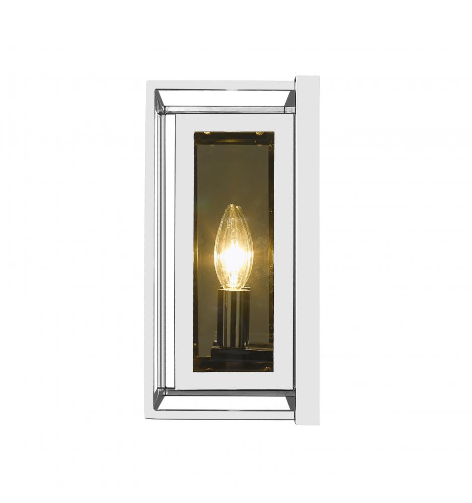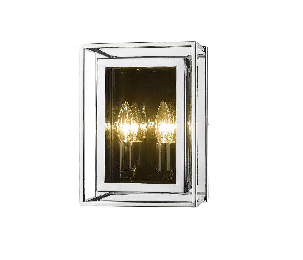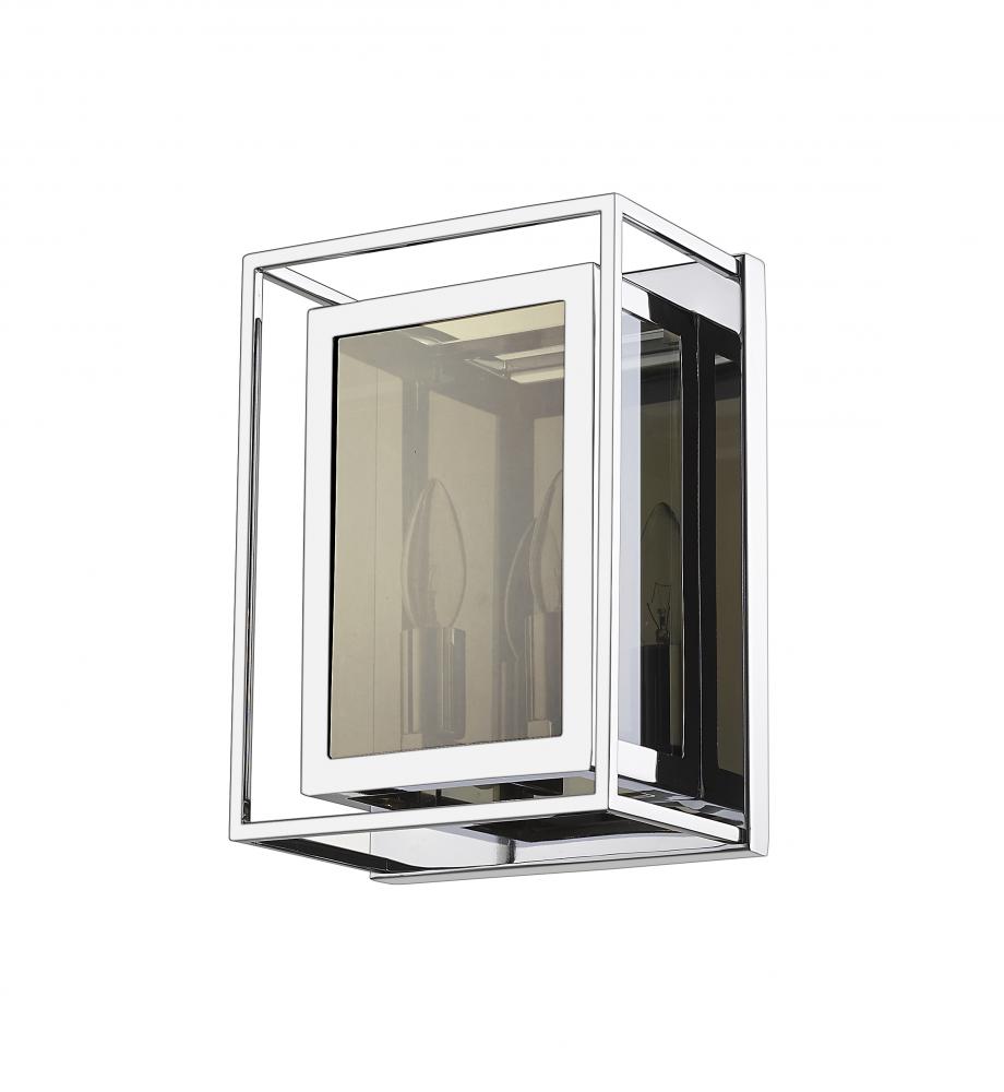 Choose this decadent contemporary two-light wall sconce for its chic blend of steel and mirror, and a geometric linear silhouette that updates modern bathrooms and hallways. A double frame made from chrome finish steel joins both clear and smoke glass to deliver a soothing, atmospheric aesthetic with plenty of inspiration. Candelabra bulb mounts create an opportunity to change up the motif and fit into transitional spaces.