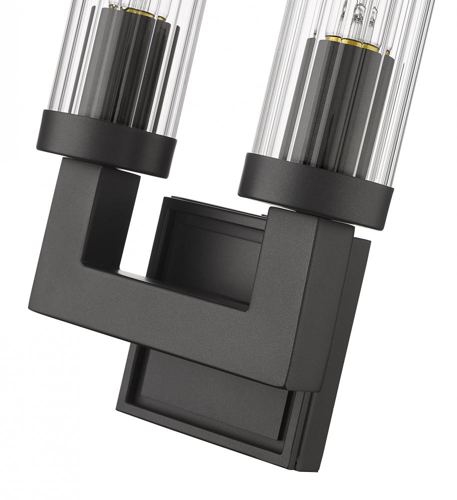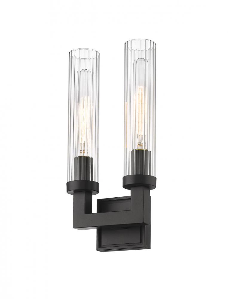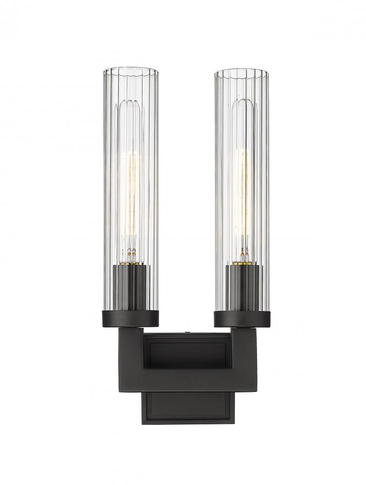 Doubling the illuminating power of accent lighting, the Beau two-light wall sconce delivers on sophisticated style and a sensible minimalist design. Add this fixture to a contemporary hallway, entryway, or bedroom, delivering an upscale modern vibe with a minimalist aesthetic. Sleek tubular fluted glass shades sit side by side, mounted to a wall plate and frame made of bold bronze steel.
