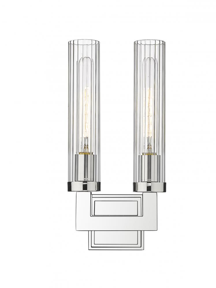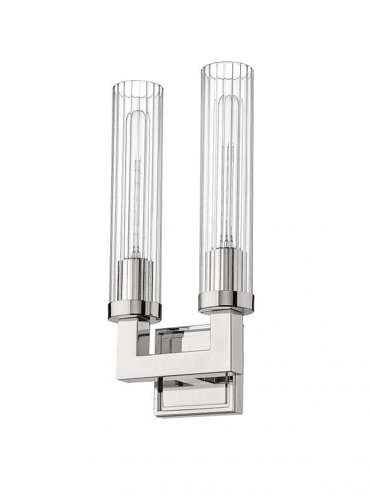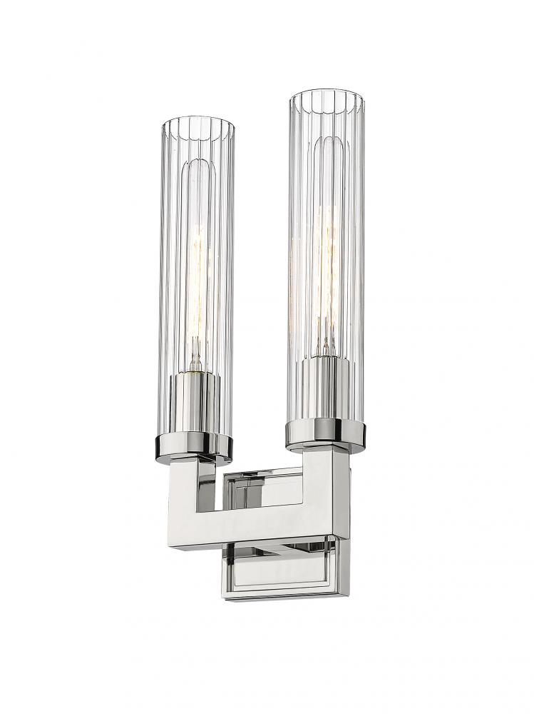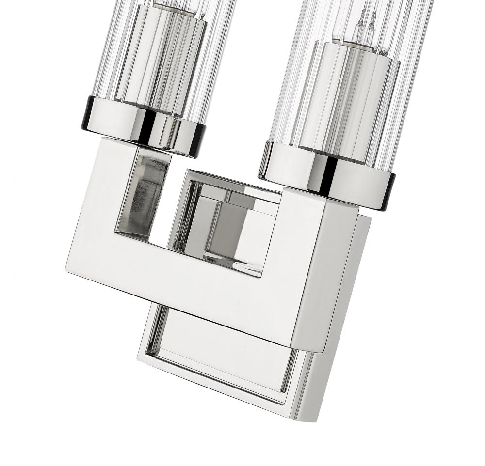 Minimalism goes sophisticated and tasteful in the design of the chic Beau two-light metal wall sconce. Add this fixture to a contemporary hallway, entryway, or bedroom, delivering an upscale modern vibe with a minimalist aesthetic. Sleek tubular fluted glass shades sit side by side, mounted to a wall plate and frame made of gleaming polished nickel finish steel.