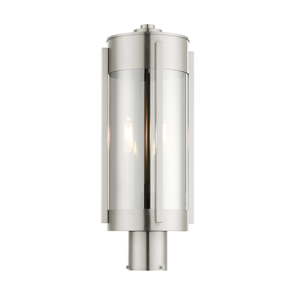 2 Light Brushed Nickel Outdoor Post Top Lantern
