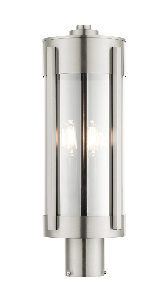 2 Lt Brushed Nickel Outdoor Post Top Lantern