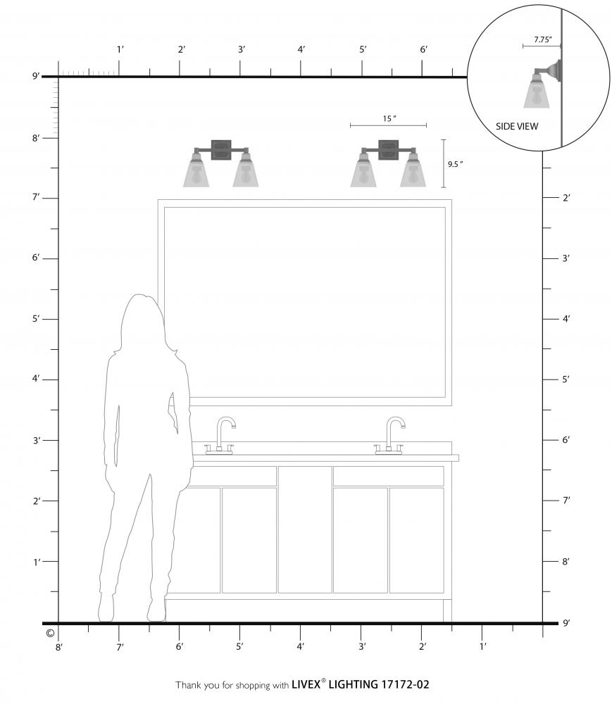 2.25 H Downlight or 7.25 H Uplight