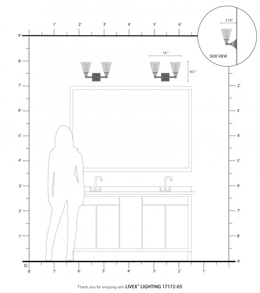 2.25 H Downlight or 7.25 H Uplight