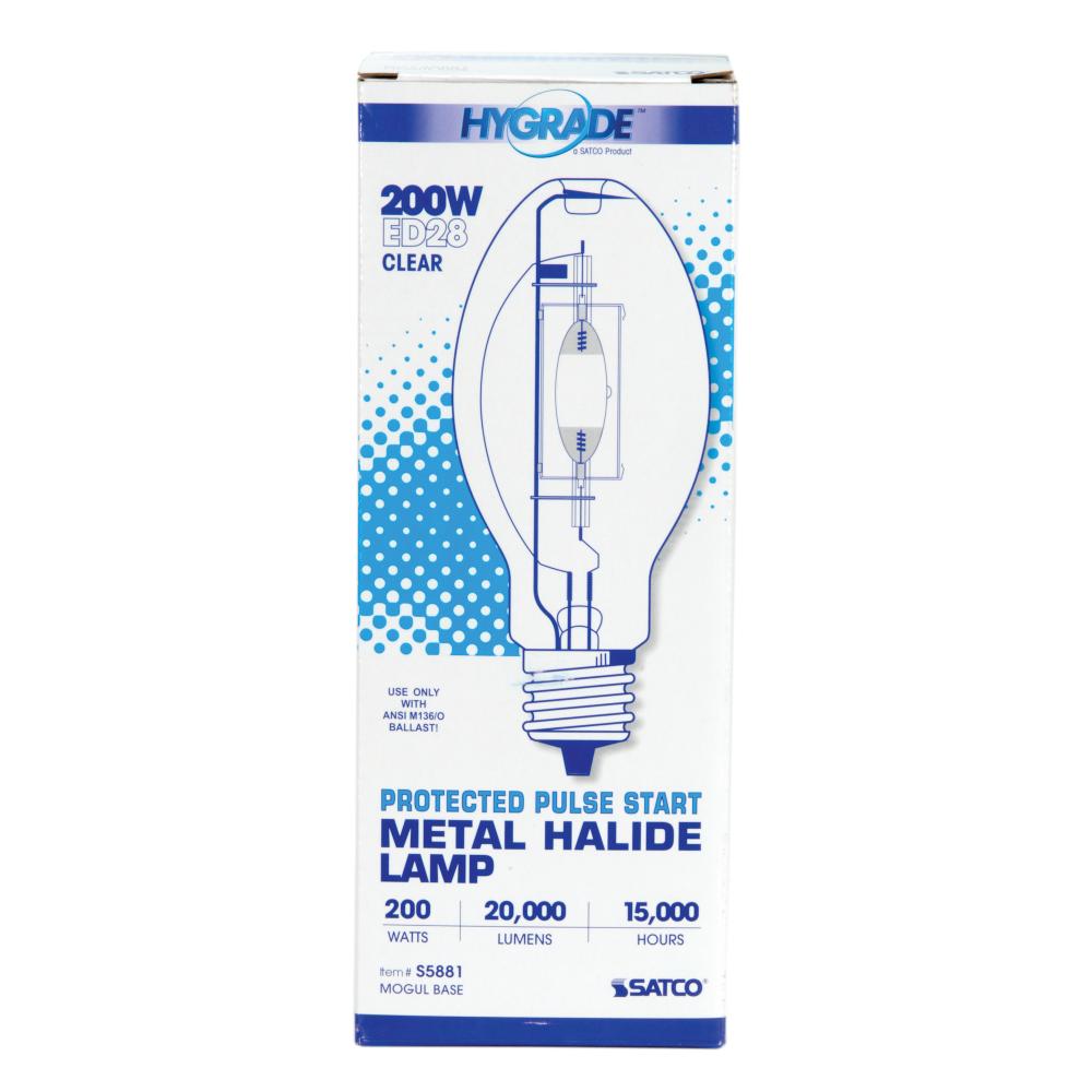 200 Watt; Metal Halide HID; Mogul extended base; ED28; Clear; 65 CRI; 4200K