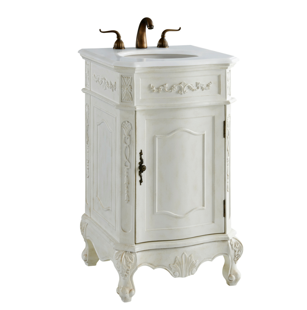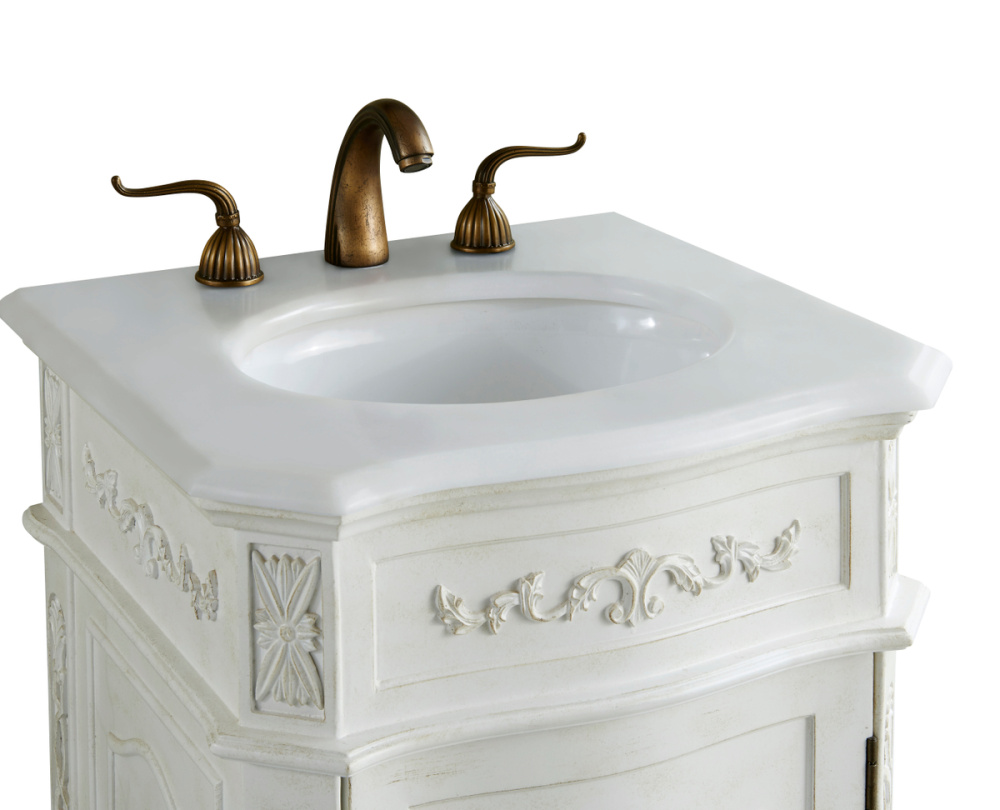 21 inch Single Bathroom vanity in Antique White with ivory white engineered marble