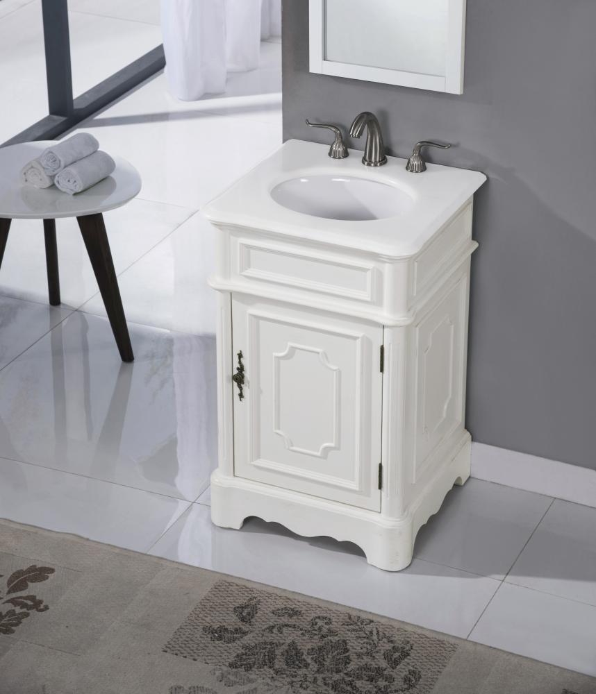 21 inch Single Bathroom vanity in Antique White with ivory white engineered marble