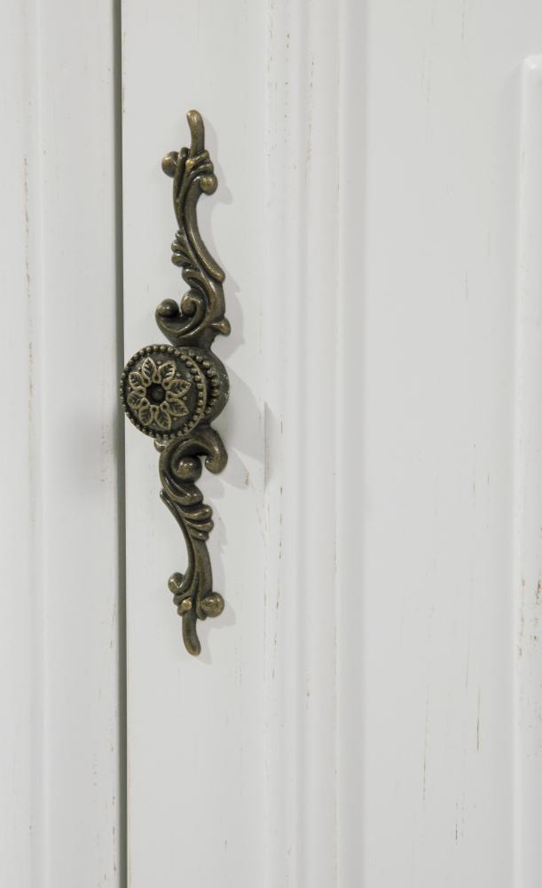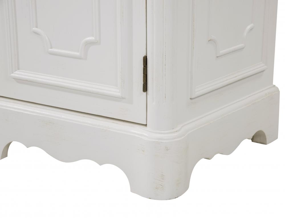 Retro vanity beautifully balances modern-day features and classic charm, making it a wonderful enhancement to your home or office bathroom. Highlighted by its durable use of an ivory white engineered marble countertop that enhances the hand painted cabinet. Comes with an oval white porcelain undermount sink, decorated with detailed carving and scalloped pedestal base. A solid shelf behind the door that provides ample space for your daily necessity. With antique bronze finish door pulls, this stately vanity is truly a majestic bath furniture. The cabinet is constructed of kiln-dried solid wood and MDF.