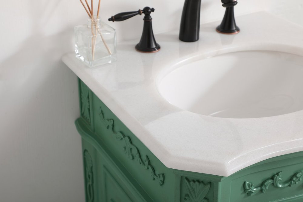 Comes with an off-white marble top with slight brown veining and bevel edge design, please note that due to the natural characteristics of the stone, the color and/or pattern of each countertop may vary from the pictures.