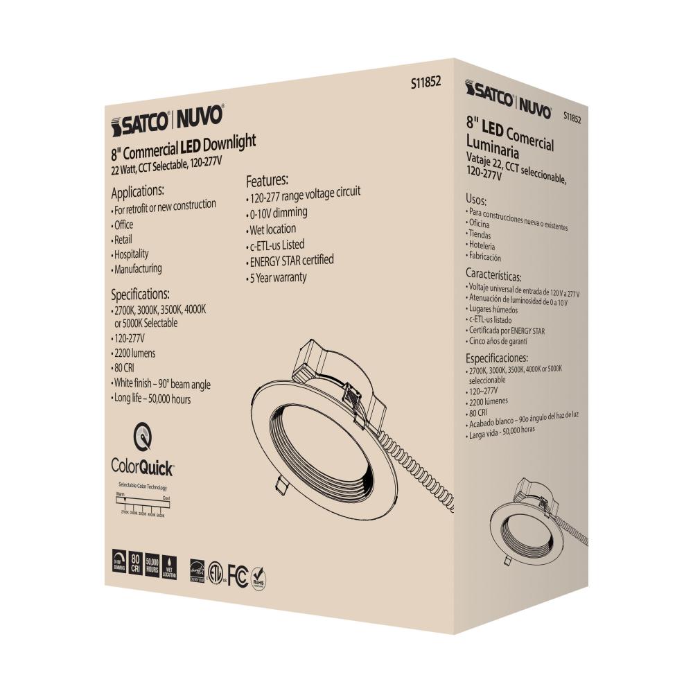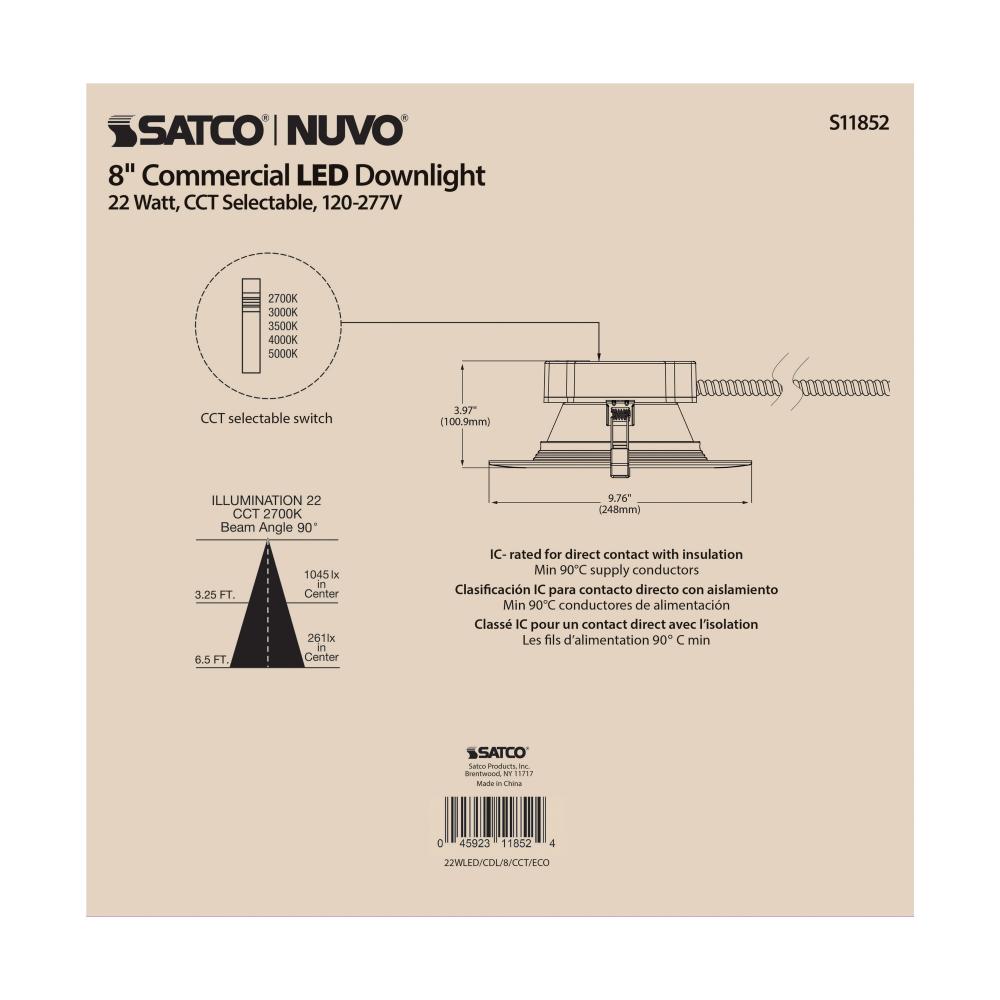 Satco's S11852 22 watt commercial LED downlight offers versatility and functionality in commercial applications. The round fixture in white finish is a practical solution for energy efficient lighting. This dimmable, recessed downlight is CCT selectabl