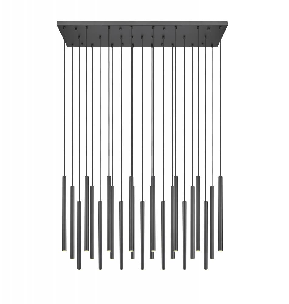 Go bold with the compelling matte black finish featured on this modern 23-light linear chandelier. Its elongated profile is perfect for foyers and dining rooms, offering bright, dimmable illumination and exquisite ambiance. Integrated LED lights are tucked within slim housings, perfectly complementing a streamlined, simple silhouette that stands out in any setting.