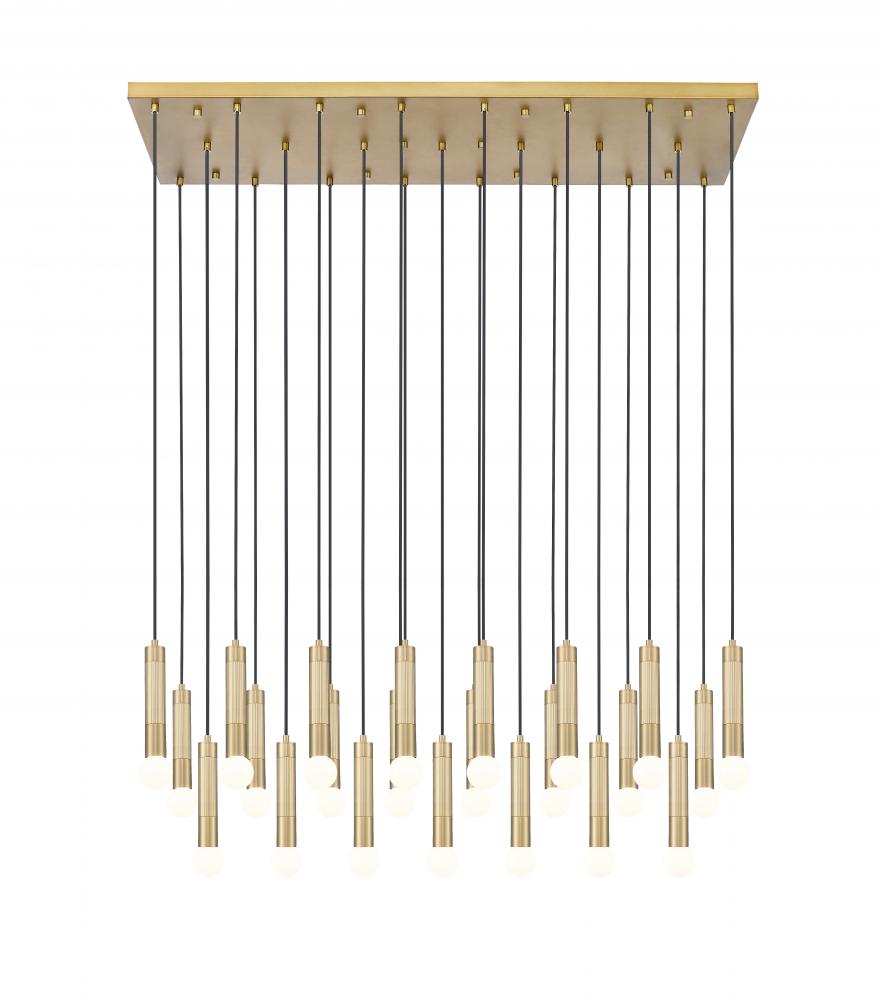 Embrace sophistication with the striking simplicity and rich modern gold finish featured on a contemporary 23-light linear chandelier. Its a tiered design with elongated tubes and petite lights, creating a striking silhouette over foyers, living and dining rooms.