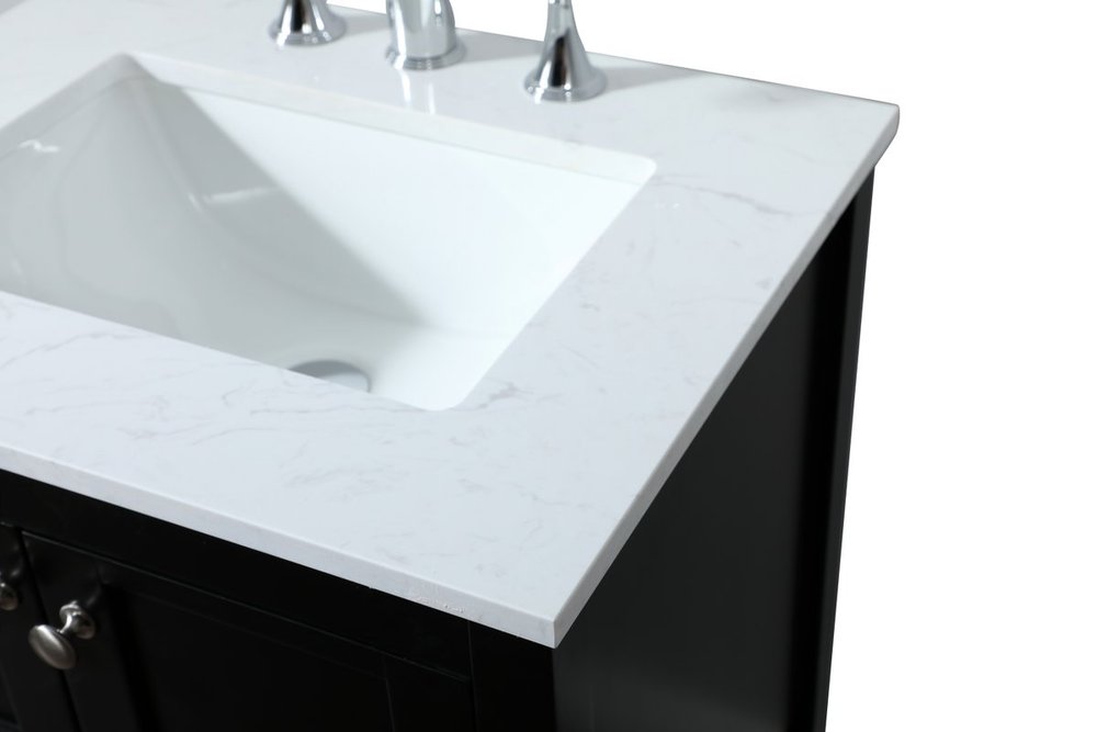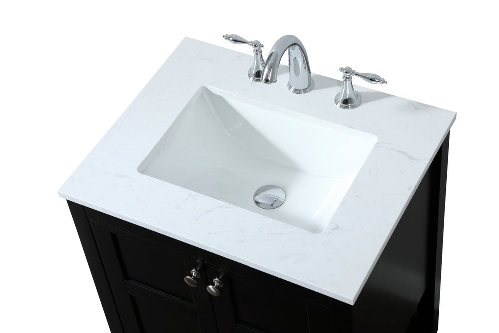 Comes with an undermount porcelain sink and a durable calacatta engineered marble stone top