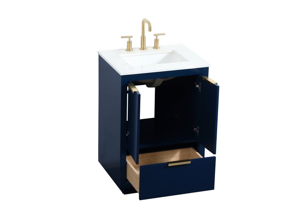 The Blake collection vanity cabinet will be a modern furniture statement piece in your bathroom. Our color combination creates a calming atmosphere in the room. The gold handles bring a vibrant touch to balance the vanity. With the simplistic clean lines, the cabinet catches eyes with its beautiful smooth surface. Open the cabinet doors to store what you desire and make use of the spacious area. Gently close the door and the soft closing glides will quietly closes the door. To top it off, the calacatta engineered marble adds a luxury and modern finish to the durable stonetop.