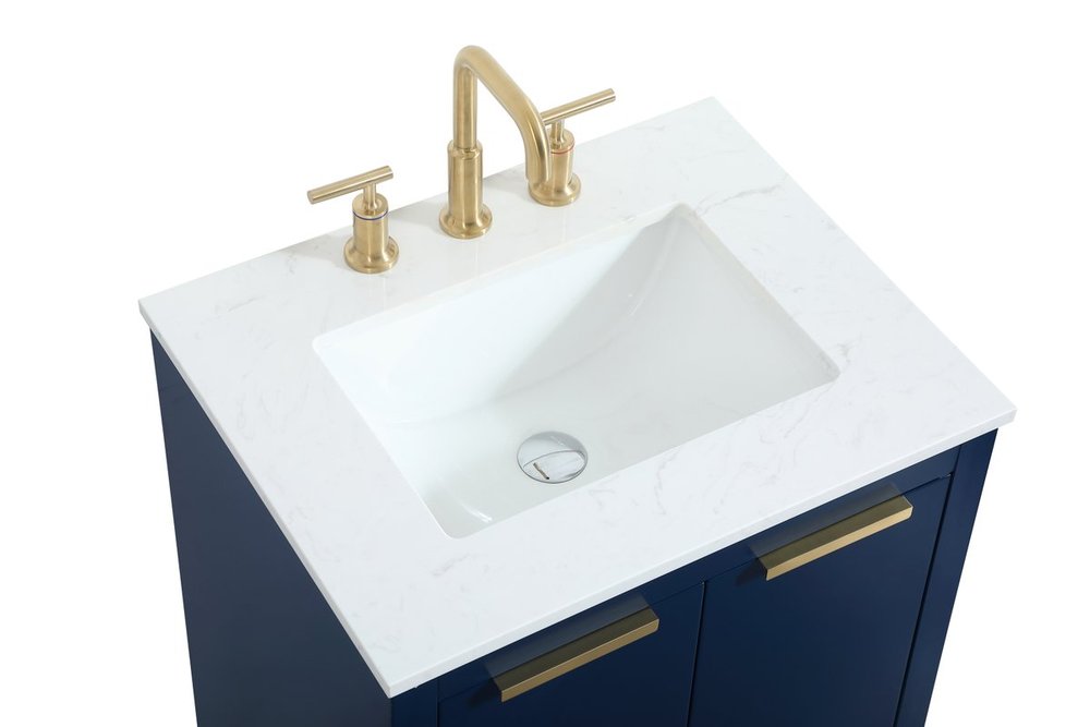 Comes with an undermount porcelain sink and a durable calacatta engineered marble stone top