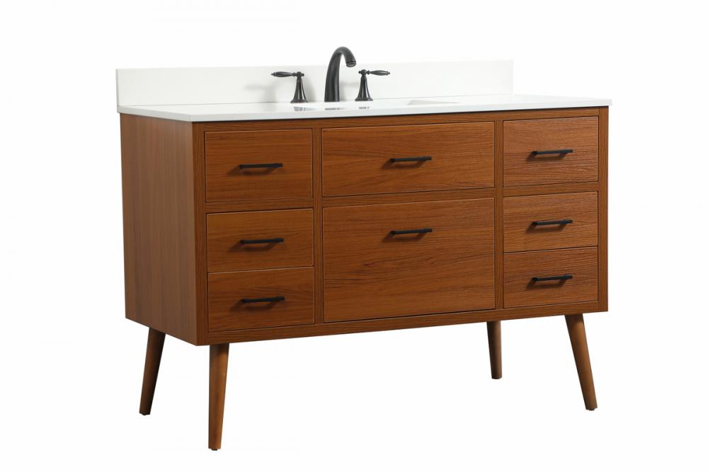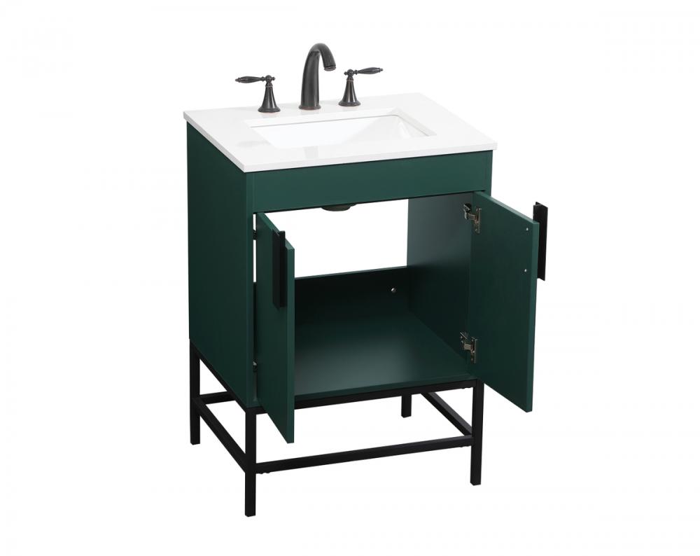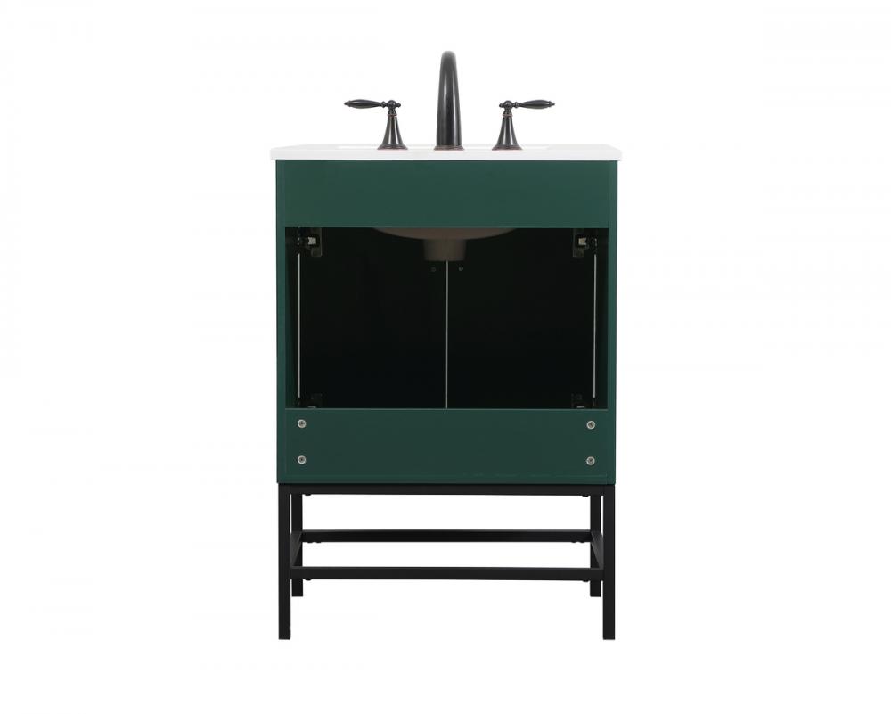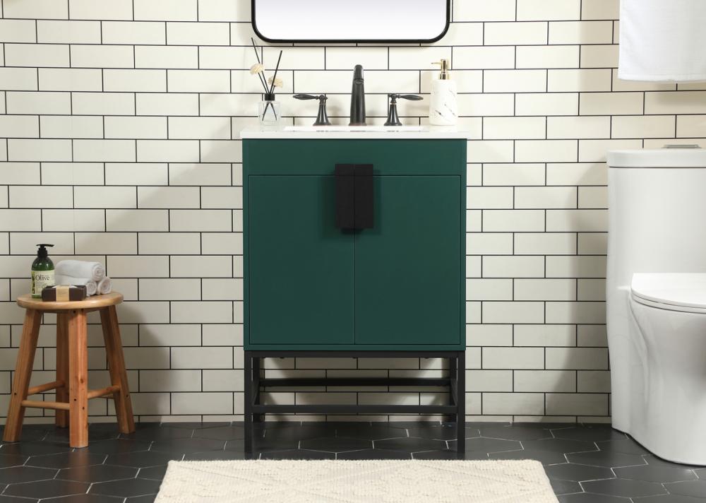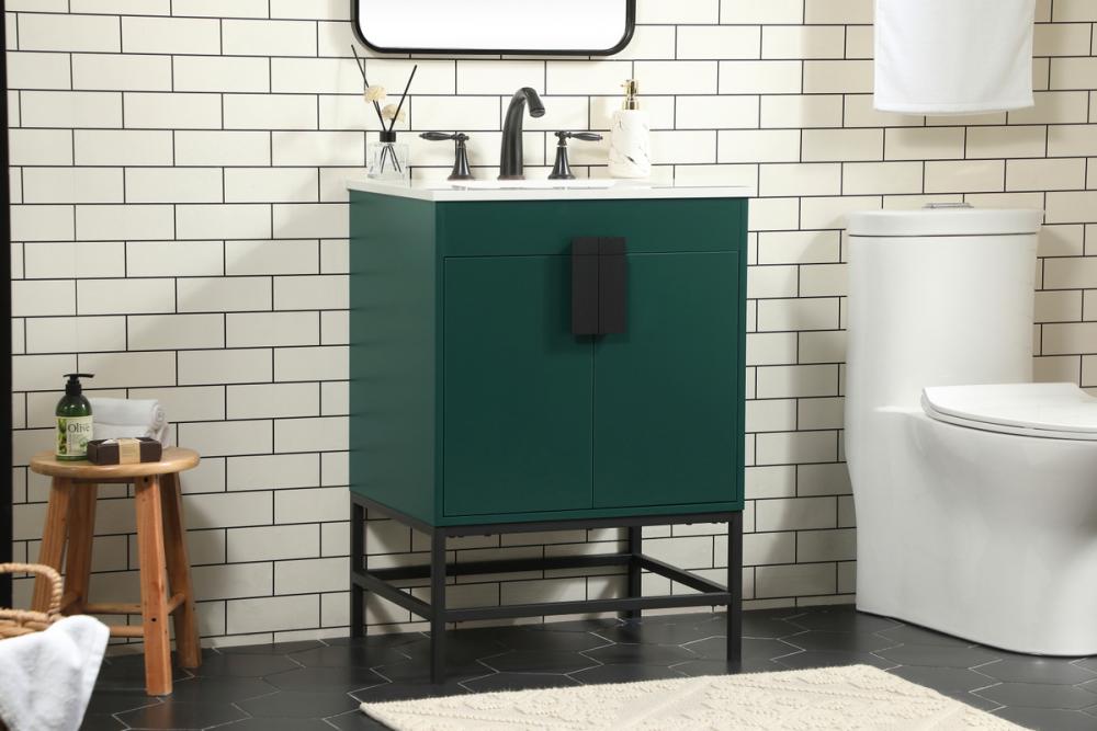 This vanity is a sleek-looking piece of bathroom furniture that is easy to incorporate into your design scheme. The cabinet features a smooth door panel with an oversized steel handle and soft close hinges provide ample room for accessories. Constructed of engineered wood, the powder-coated metal rod legs are an urban industrial look that we love. Minor assembly of the metal legs needed to get this vanity up and running.