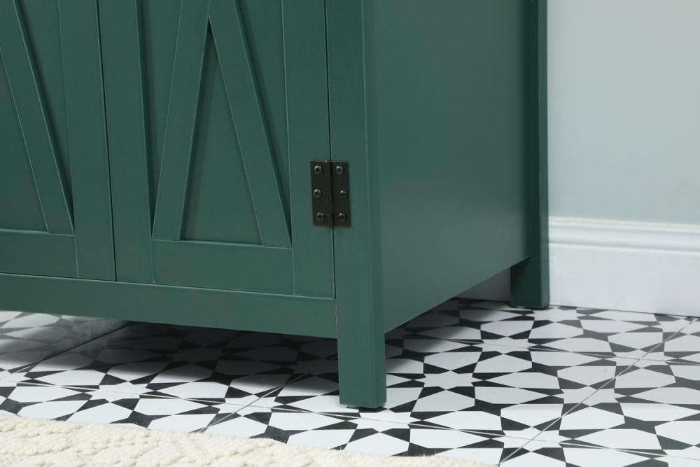 Reminiscent of barn doors, the 2 door cabinet adds both stylistic charm and function with its plethora of storage options for all your bathroom essentials. Whether for your bathroom or the guests', everyone will marvel at its classic look for traditional and farmhouse aesthetics. A slab of engineered marble rounds out the piece up top, as well as the porcelain under mount sink and predrilled faucet holes. This vanity arrives fully assembled.