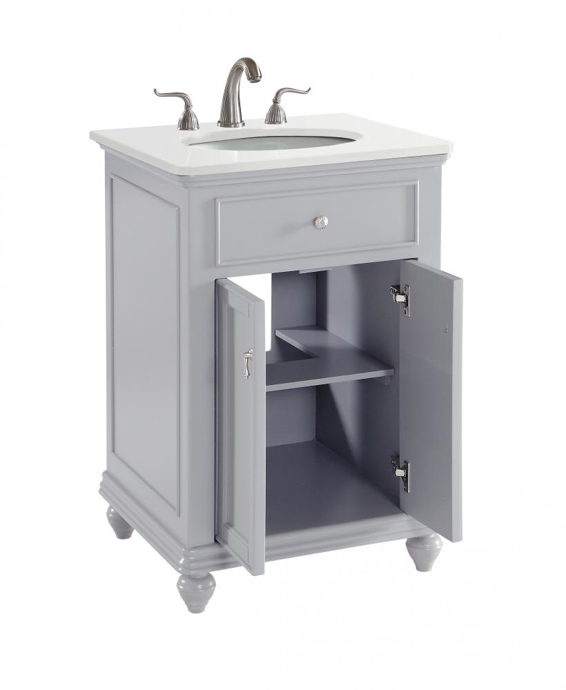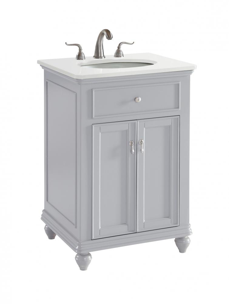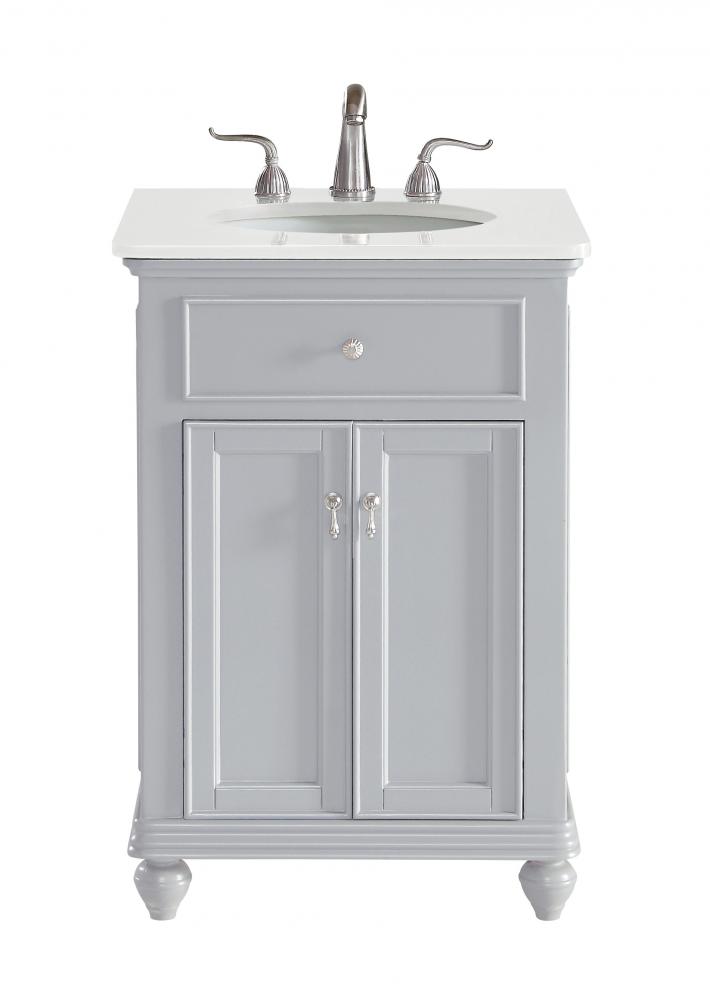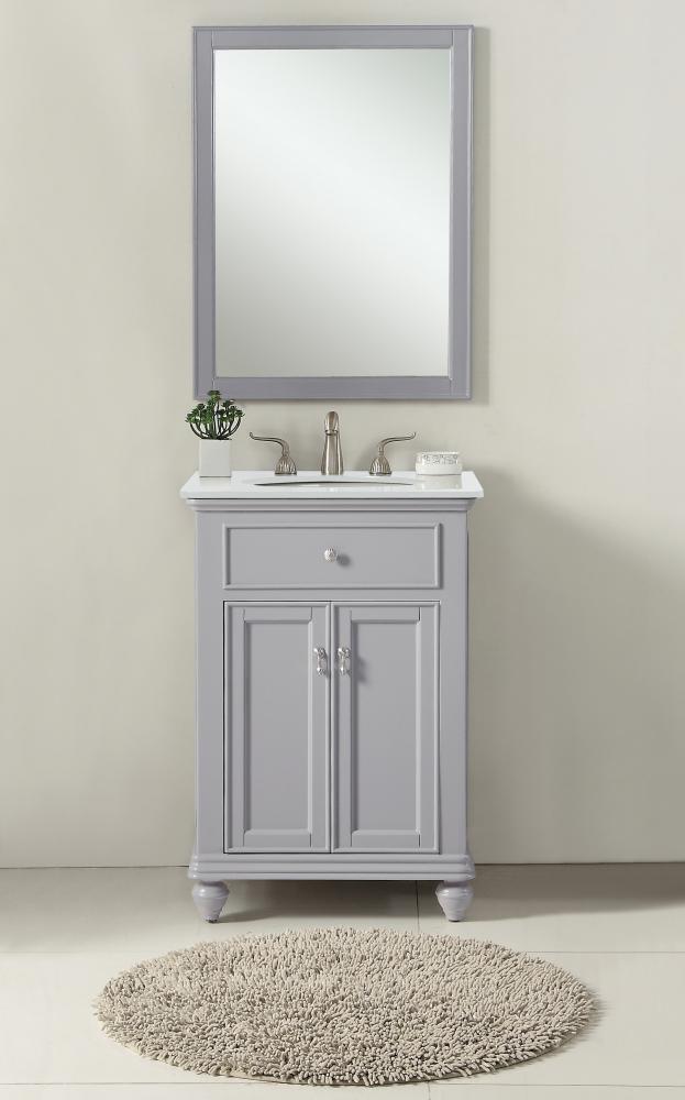 24 inch Single Bathroom vanity in Light Grey with ivory white engineered marble