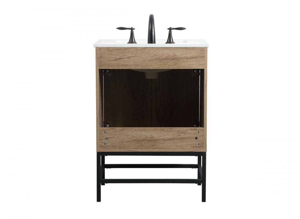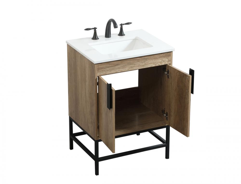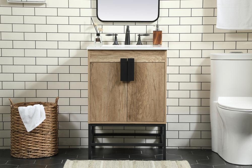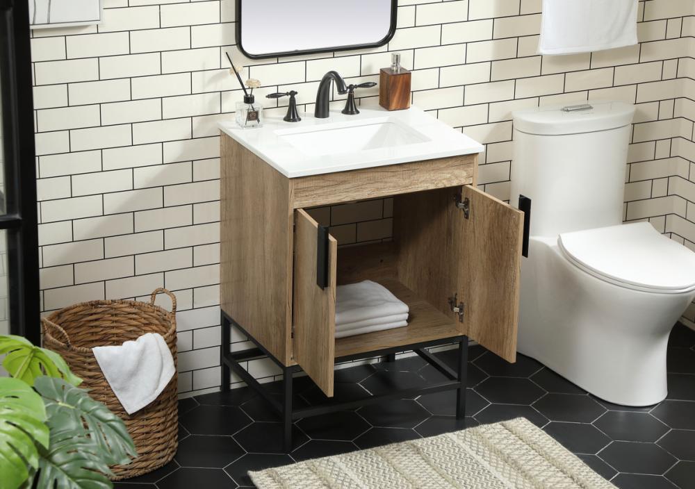 This vanity is a sleek-looking piece of bathroom furniture that is easy to incorporate into your design scheme. The cabinet features a smooth door panel with an oversized steel handle and soft close hinges provide ample room for accessories. Constructed of engineered wood, the powder-coated metal rod legs are an urban industrial look that we love. Minor assembly of the metal legs needed to get this vanity up and running.