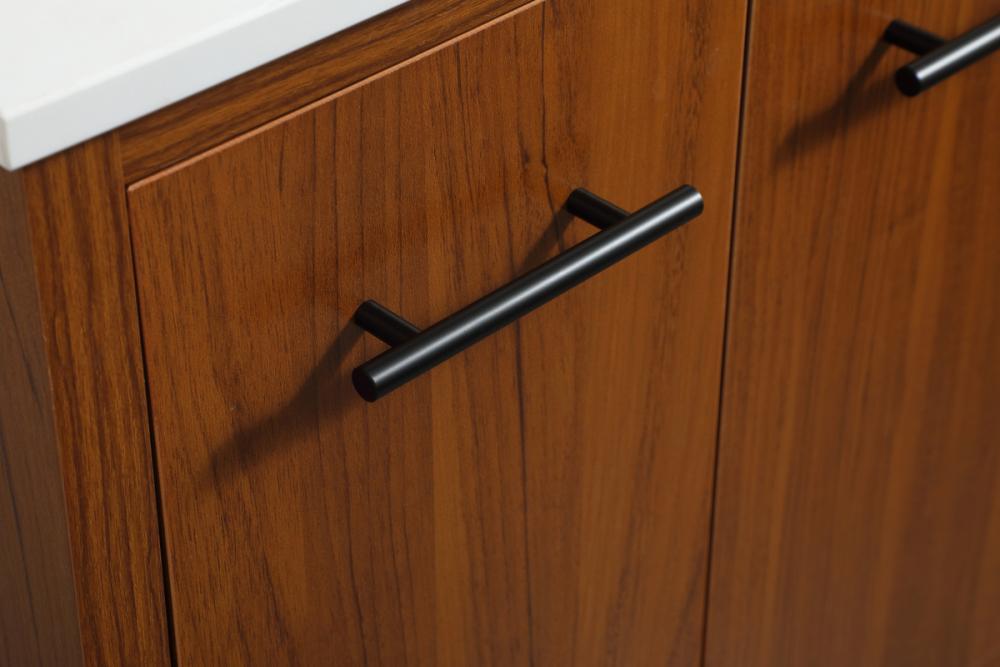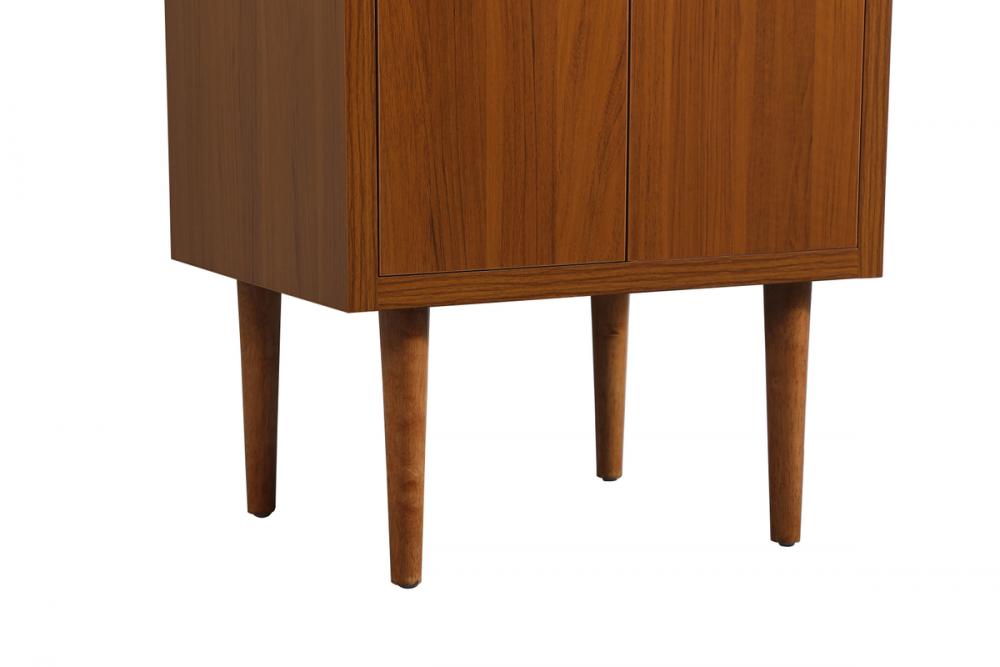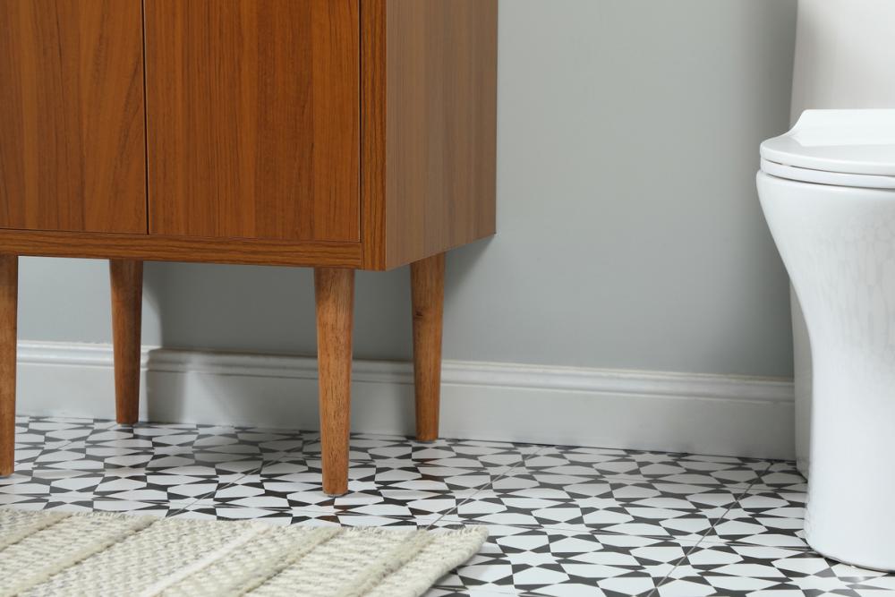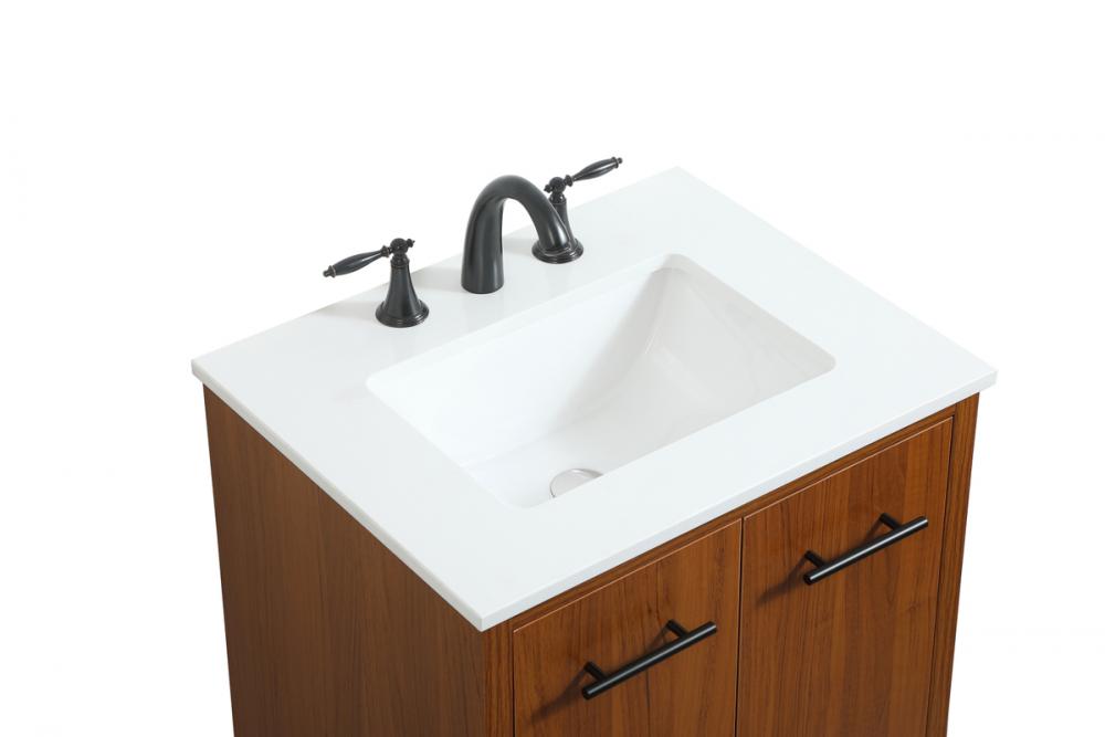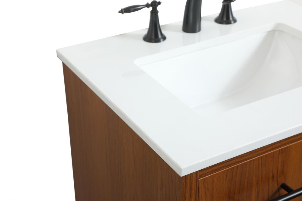 Delve into a world of minimalistic fashion and contemporary styling with this midcentury modern vanity. The clean lines anchors the design, while the straight tapered cylinder legs add subtle interest. Bar pull handle adorns the soft closing door hiding the base of the rectangular porcelain sink and letting you store your bathroom necessities and toiletries. The compact size makes it the perfect vanity for any bathroom or powder room, regardless of size. Whether you want to use this as a floating vanity or a freestanding vanity, the choice is yours. The durable ivory white engineered marble countertop complements the manufactured wood base vanity and is built to last.