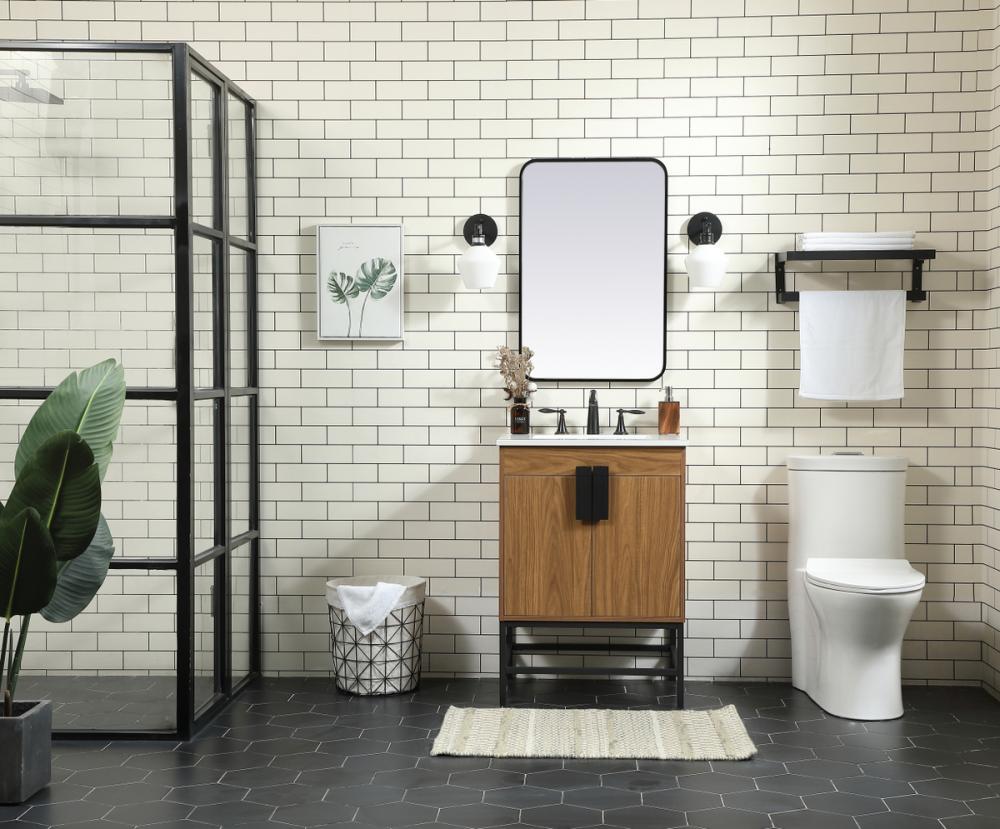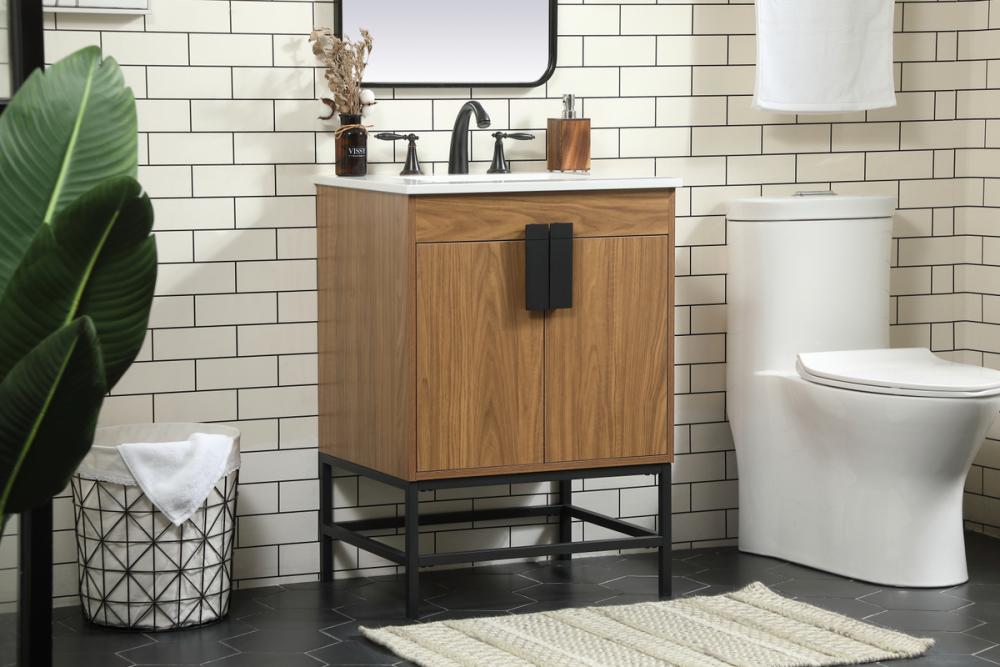 24 inch Single bathroom vanity in walnut brown
