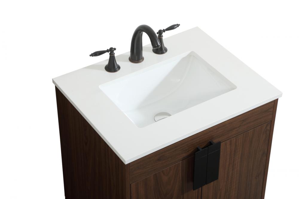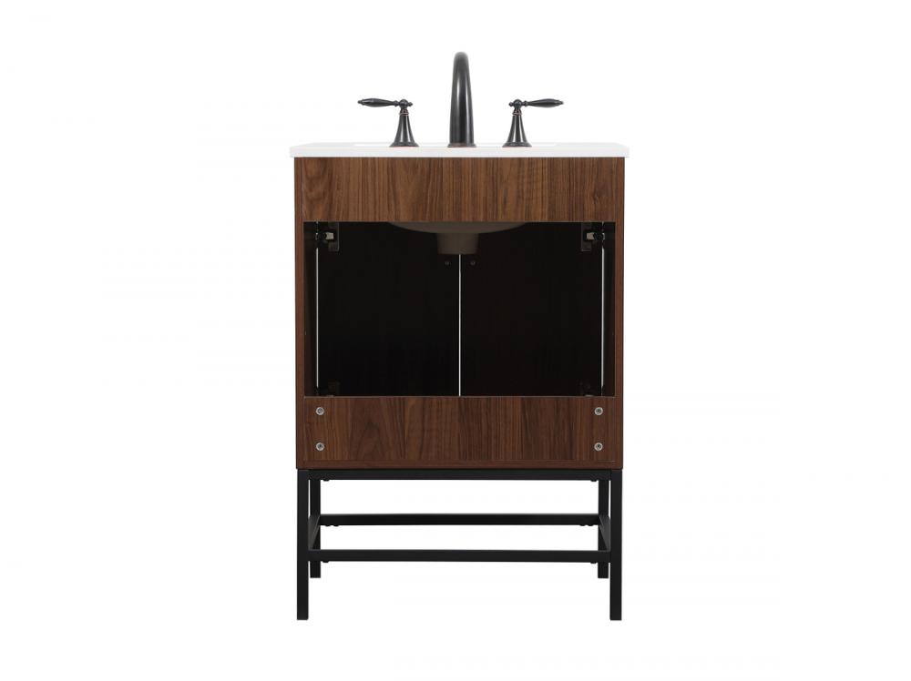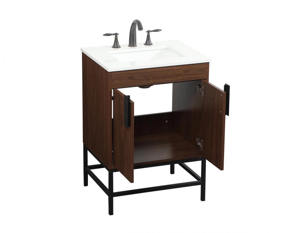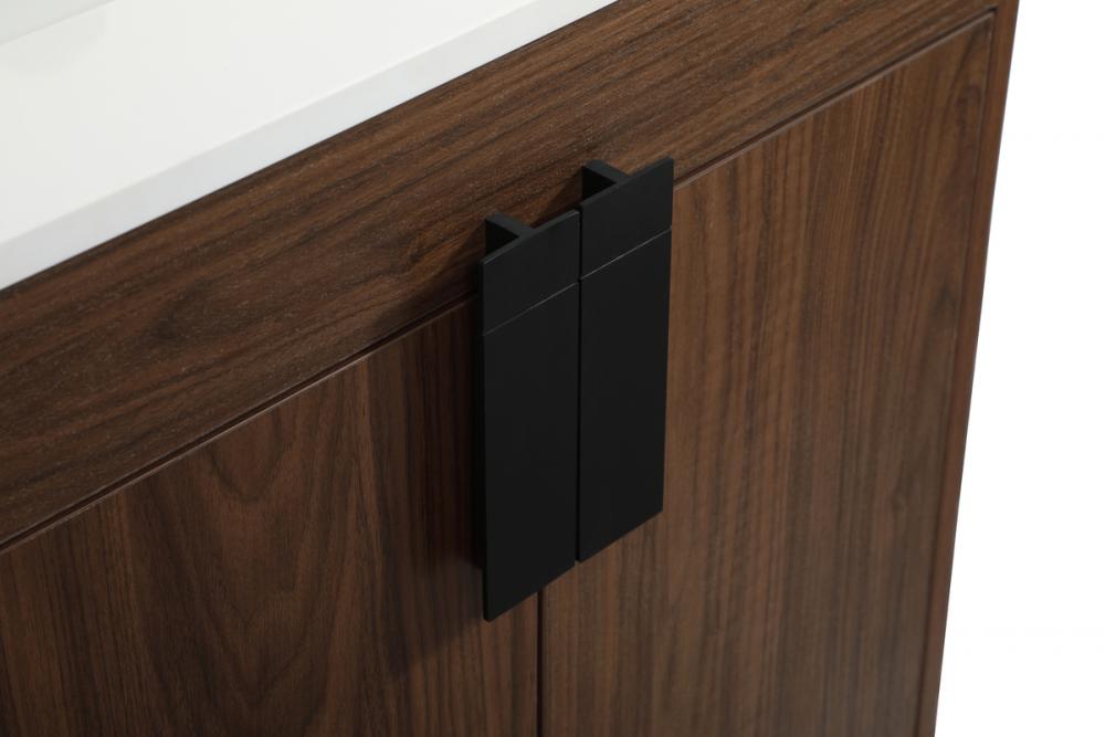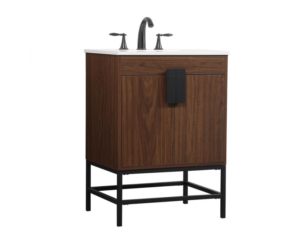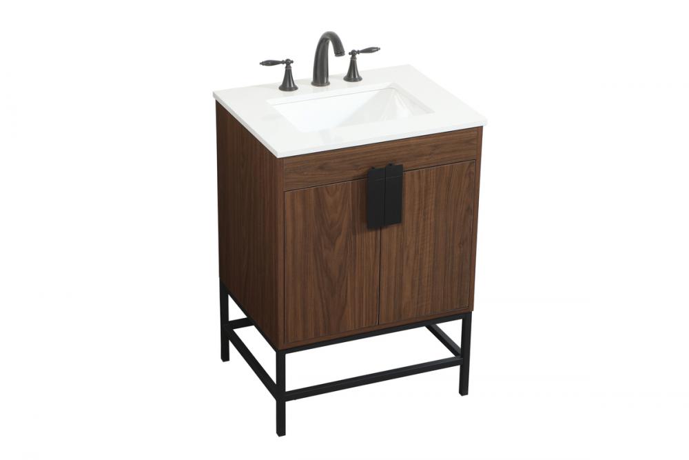 This vanity is a sleek-looking piece of bathroom furniture that is easy to incorporate into your design scheme. The cabinet features a smooth door panel with an oversized steel handle and soft close hinges provide ample room for accessories. Constructed of engineered wood, the powder-coated metal rod legs are an urban industrial look that we love. Minor assembly of the metal legs needed to get this vanity up and running.