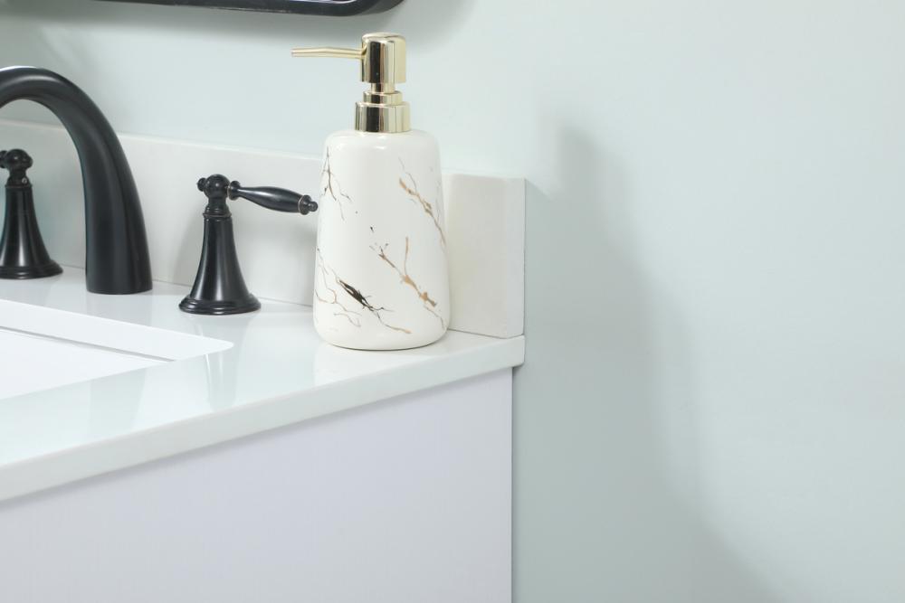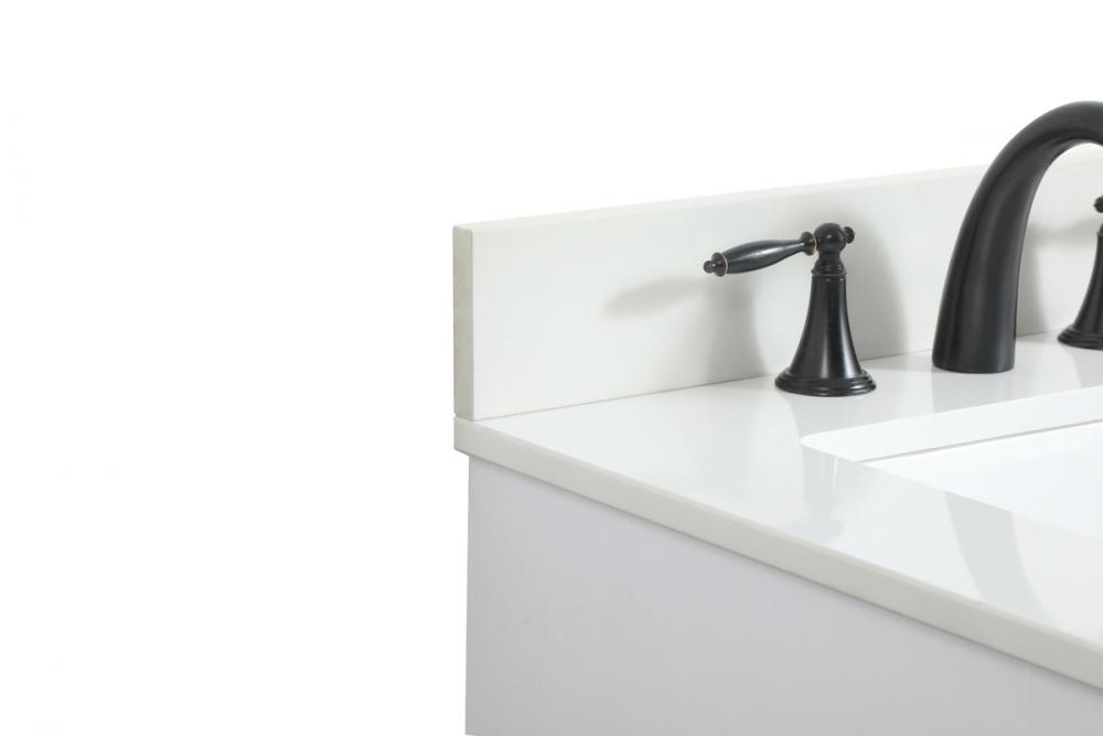 Crafted with durable engineered marble top in ivory white finish and comes with a matching backsplash that measures 24"l x 0.71"w x 3.94"h