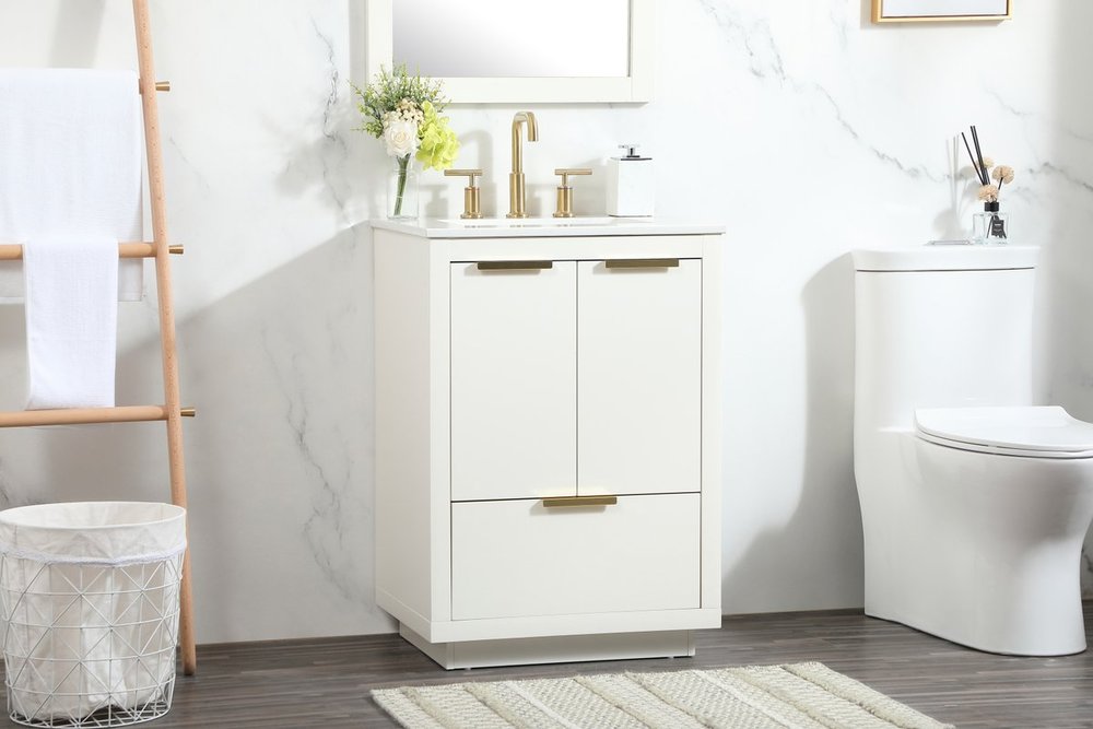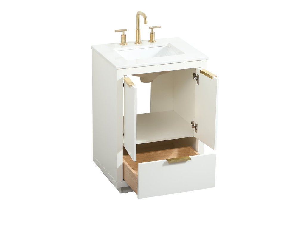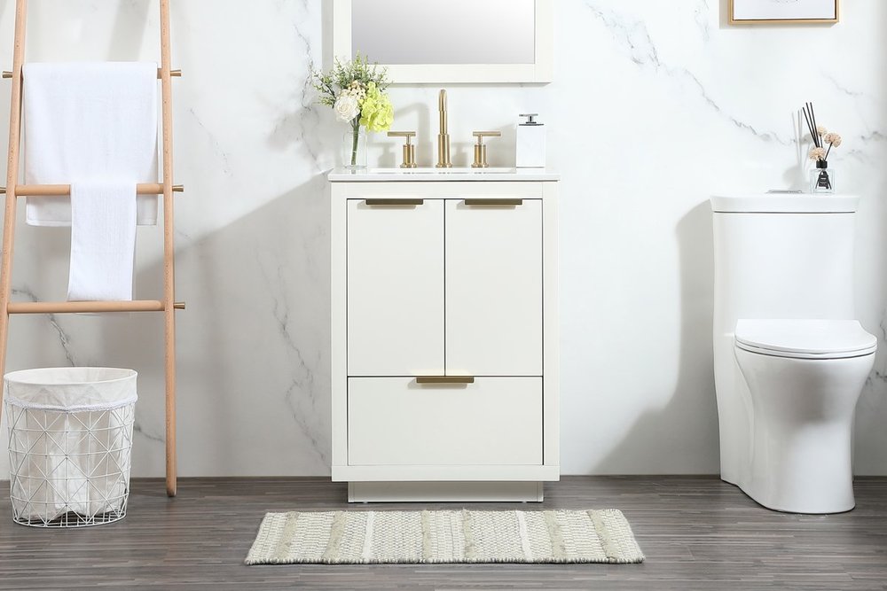 The Blake collection vanity cabinet will be a modern furniture statement piece in your bathroom. Our color combination creates a calming atmosphere in the room. The gold handles bring a vibrant touch to balance the vanity. With the simplistic clean lines, the cabinet catches eyes with its beautiful smooth surface. Open the cabinet doors to store what you desire and make use of the spacious area. Gently close the door and the soft closing glides will quietly closes the door. To top it off, the calacatta engineered marble adds a luxury and modern finish to the durable stonetop.