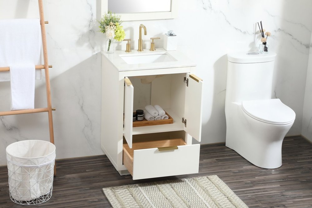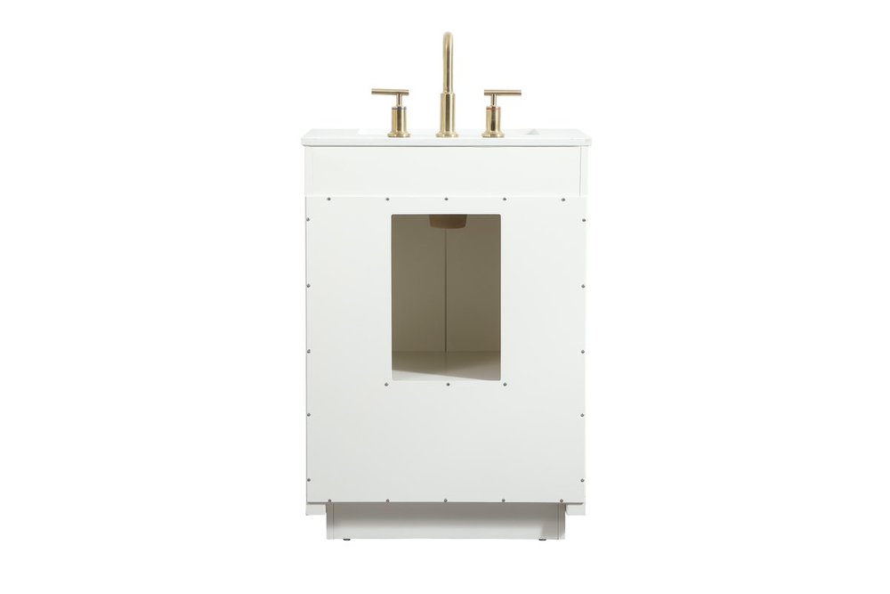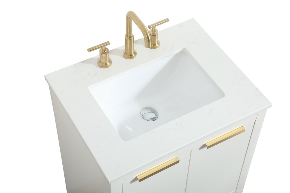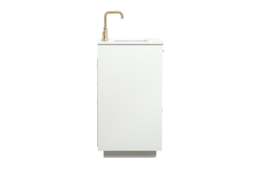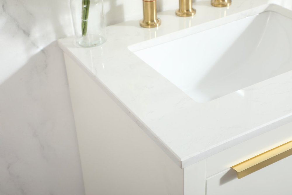Comes with an undermount porcelain sink and a durable calacatta engineered marble stone top