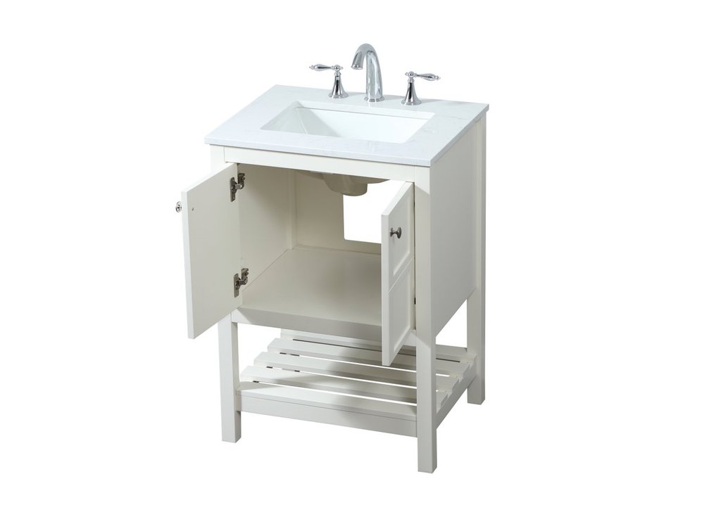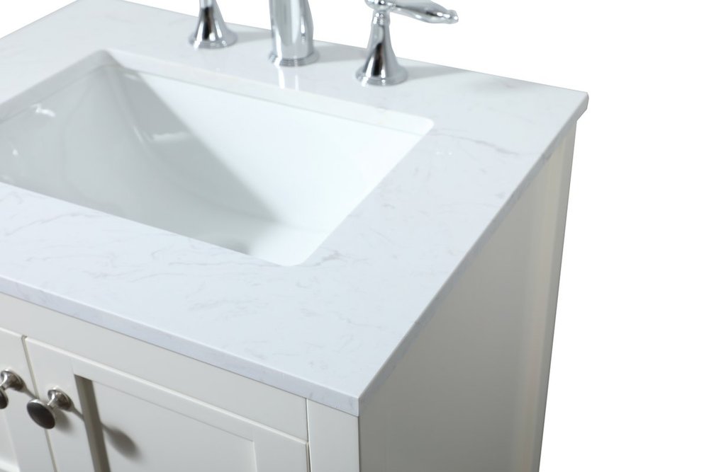 Comes with an undermount porcelain sink and a durable calacatta engineered marble stone top