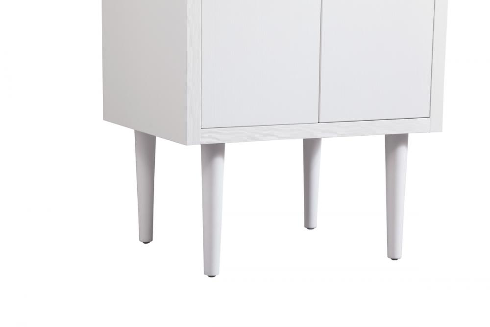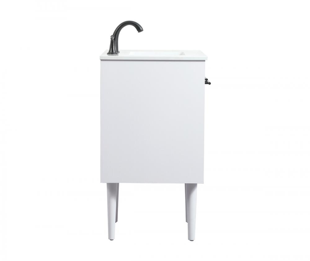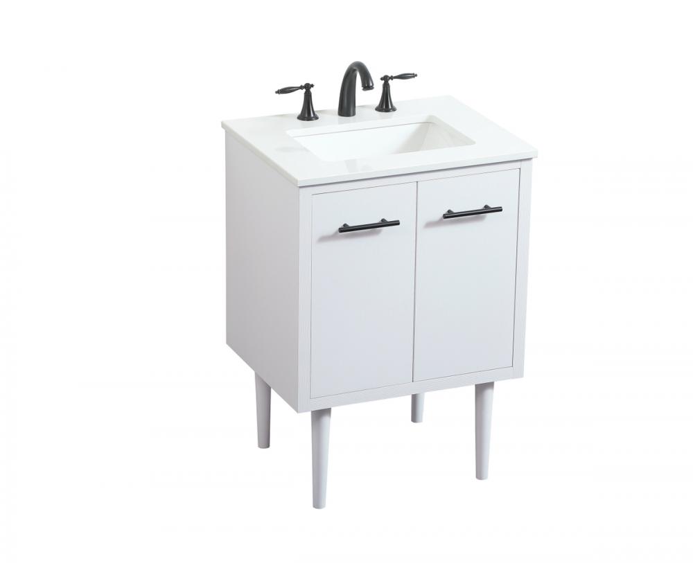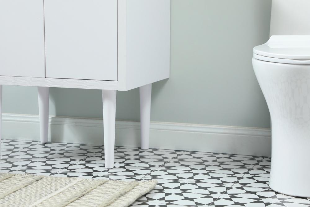 Delve into a world of minimalistic fashion and contemporary styling with this midcentury modern vanity. The clean lines anchors the design, while the straight tapered cylinder legs add subtle interest. Bar pull handle adorns the soft closing door hiding the base of the rectangular porcelain sink and letting you store your bathroom necessities and toiletries. The compact size makes it the perfect vanity for any bathroom or powder room, regardless of size. Whether you want to use this as a floating vanity or a freestanding vanity, the choice is yours. The durable ivory white engineered marble countertop complements the manufactured wood base vanity and is built to last.