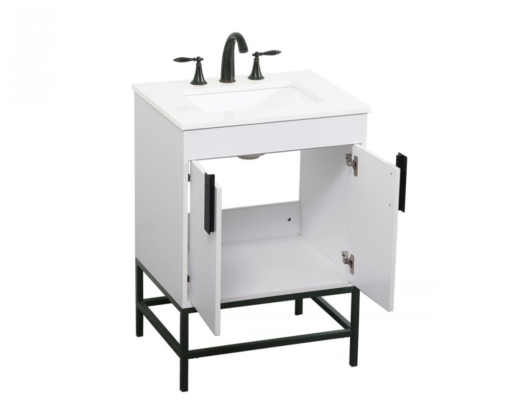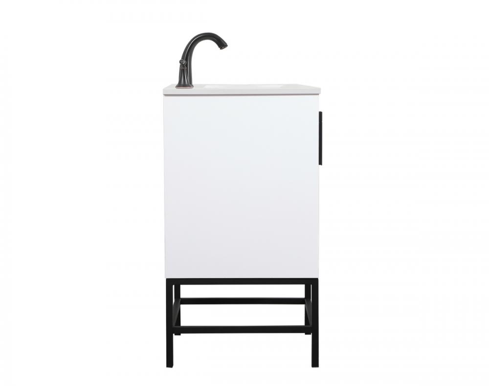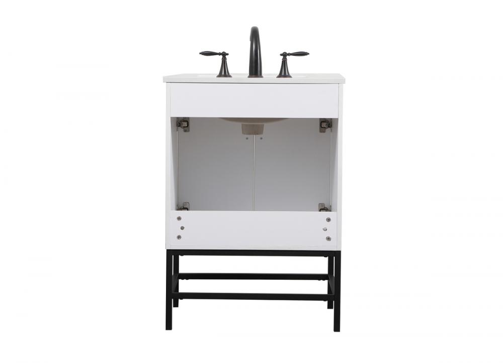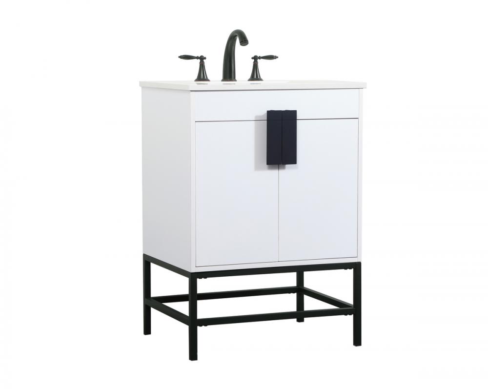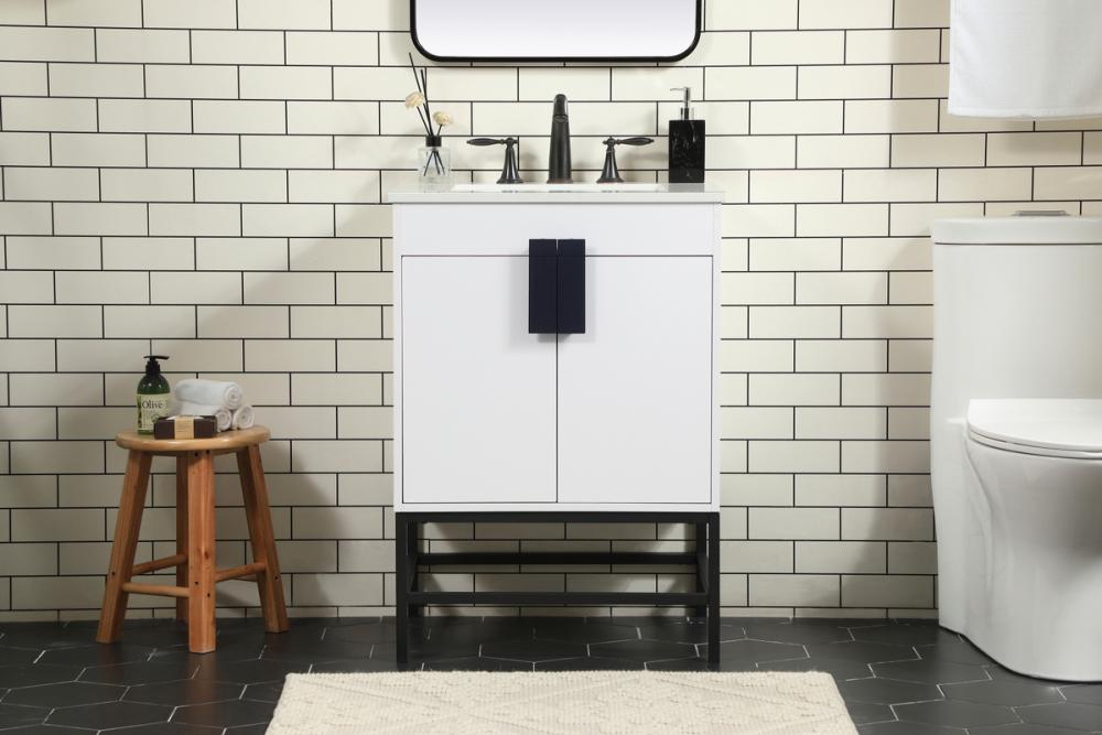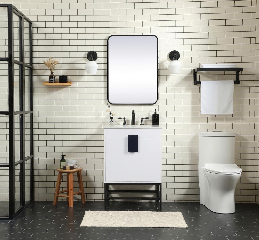 This vanity is a sleek-looking piece of bathroom furniture that is easy to incorporate into your design scheme. The cabinet features a smooth door panel with an oversized steel handle and soft close hinges provide ample room for accessories. Constructed of engineered wood, the powder-coated metal rod legs are an urban industrial look that we love. Minor assembly of the metal legs needed to get this vanity up and running.