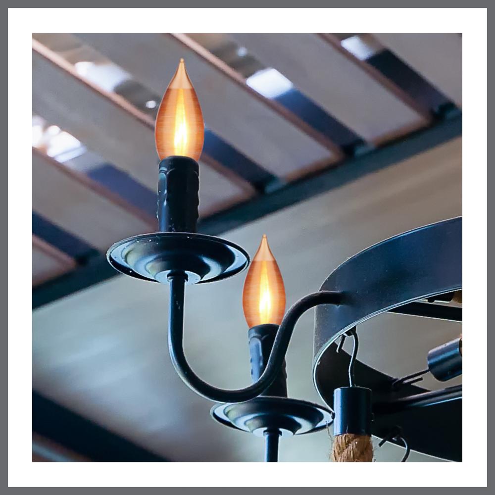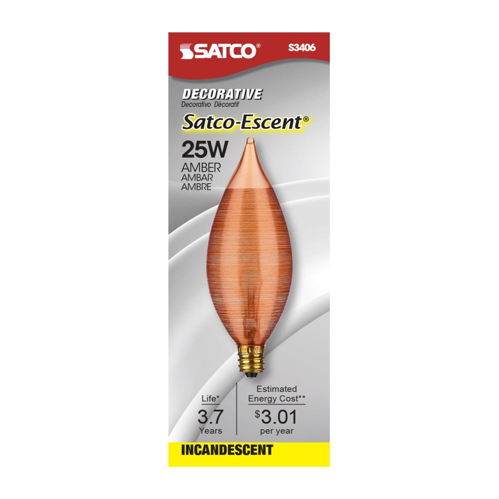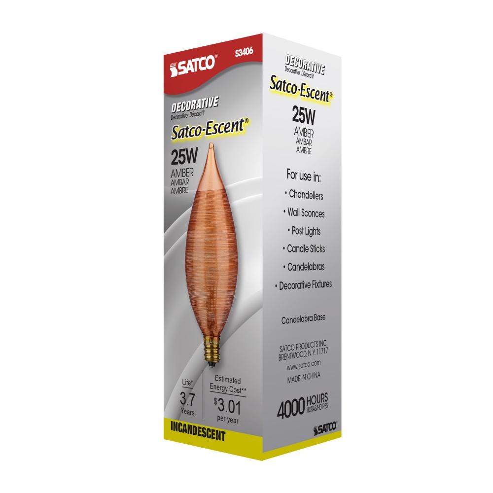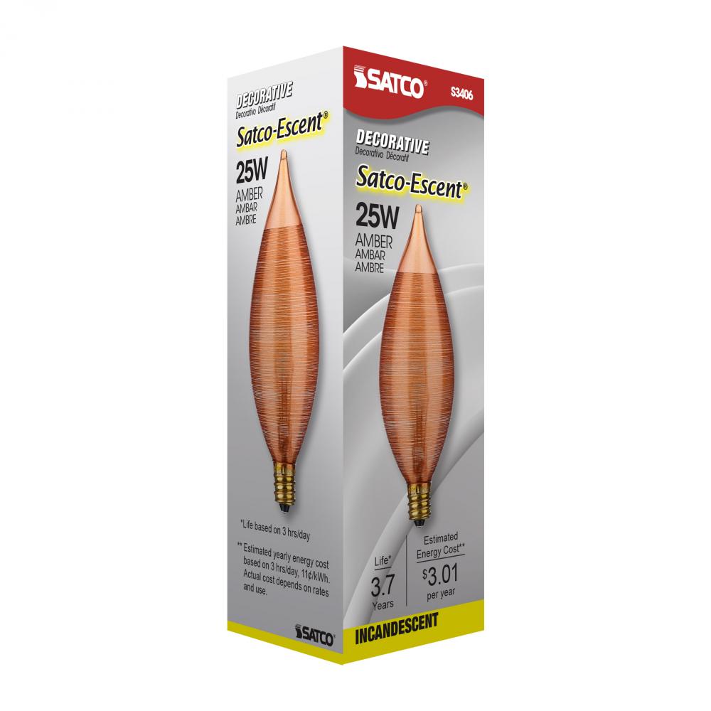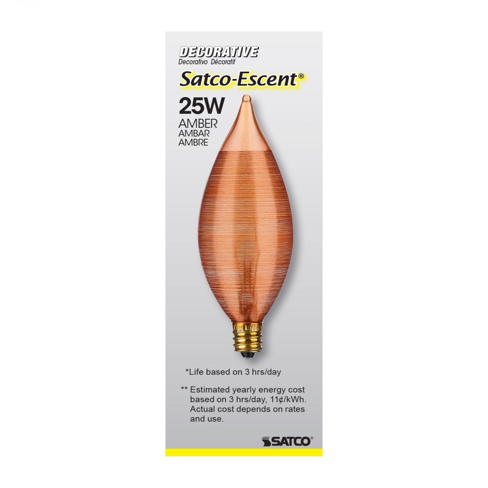 25 Watt C11 Incandescent; Spun Amber; 4000 Average rated hours; Candelabra base; 120 Volt