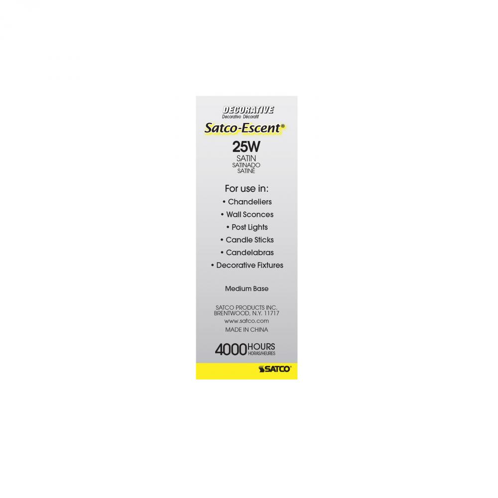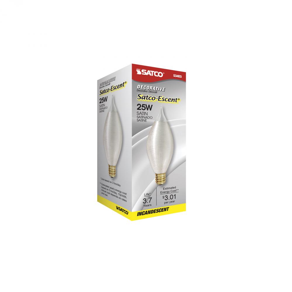 25 Watt C11 Incandescent; Spun White; 4000 Average rated hours; 160 Lumens; Candelabra base; 120 Volt