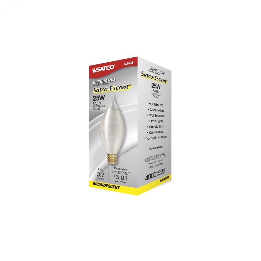 25 Watt C11 Incandescent; Spun White; 4000 Average rated hours; 160 Lumens; Candelabra base; 120