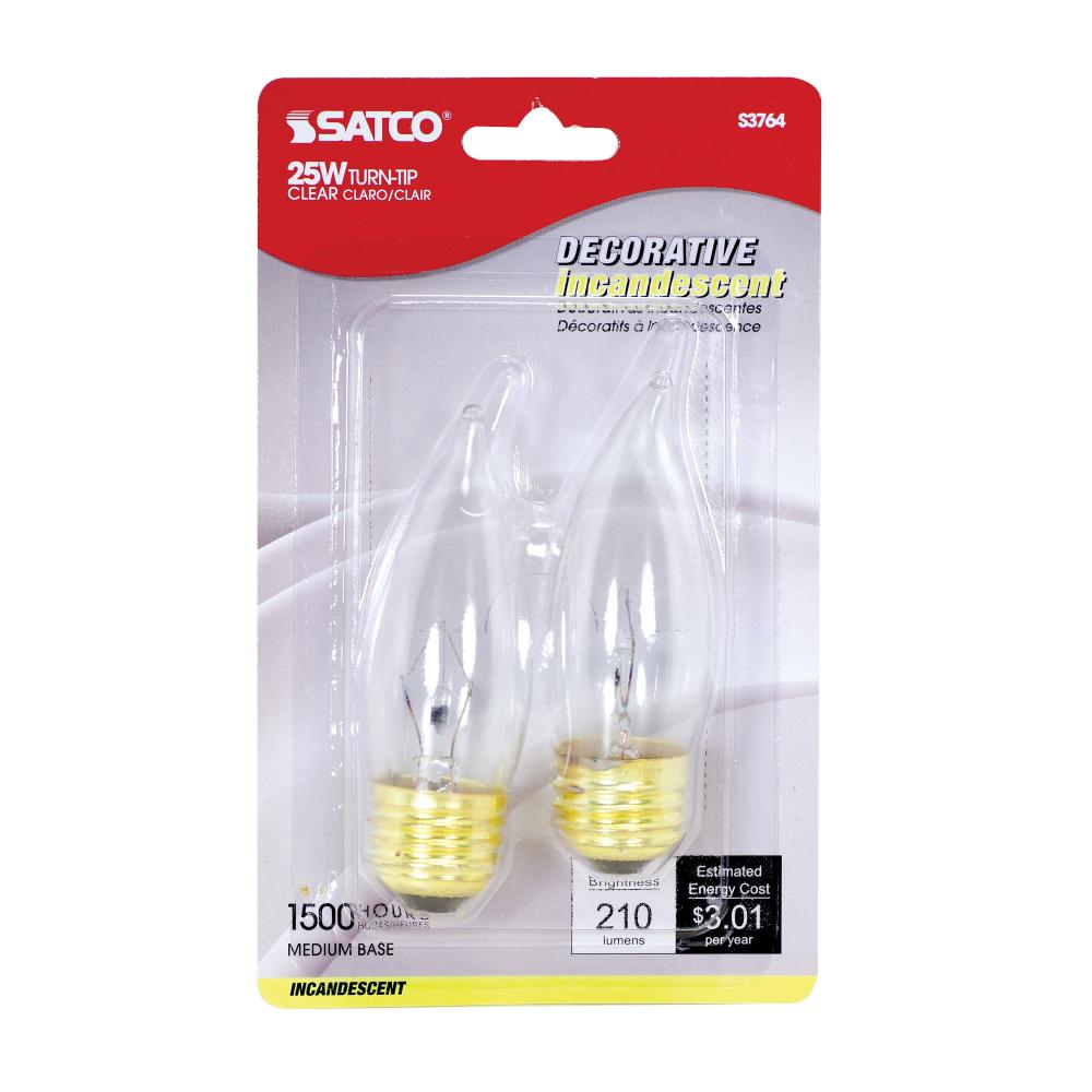 25 Watt CA10 Incandescent; Clear; 1500 Average rated hours; 210 Lumens; Medium base; 120 Volt; 2-Card