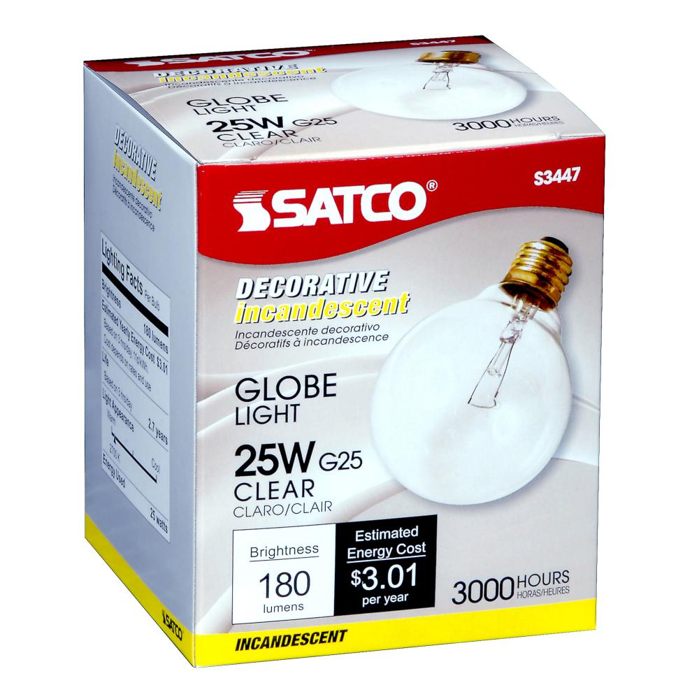 25 Watt G25 Incandescent; Clear; 3000 Average rated hours; 180 Lumens; Medium base; 120 Volt