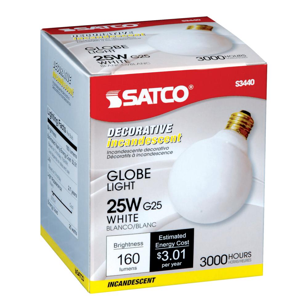 25 Watt G25 Incandescent; Gloss White; 3000 Average rated hours; 160 Lumens; Medium base; 120 Volt