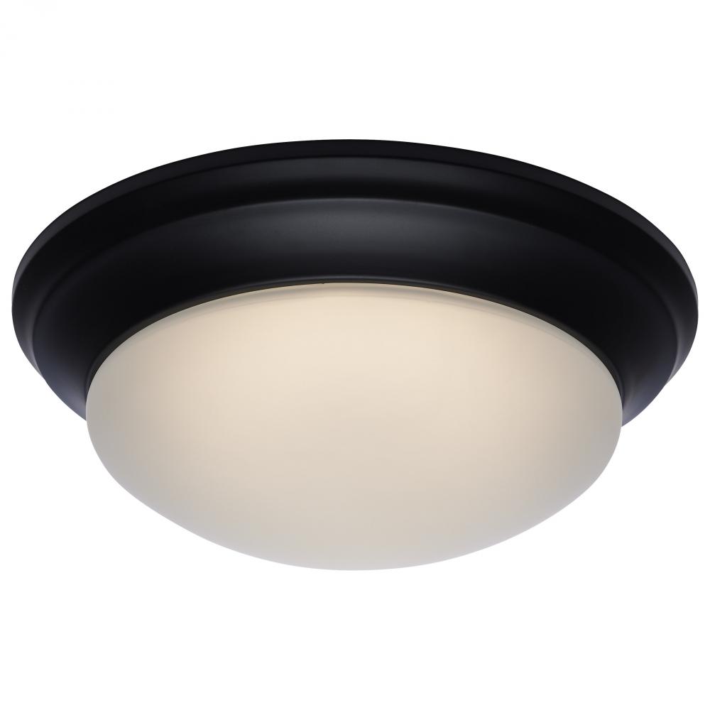 Nuvo's 62-689 25-watt, 14 inch flush mount twist and lock fixture features a matte black finish with frosted glass. Damp rated, this fixture is ideal for illuminating kitchens, hallways, bedrooms, and stairwells in residential and multi-family environm