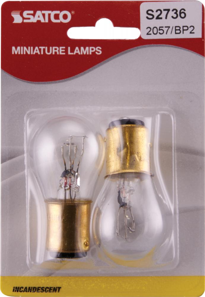 Satco's S2736 26.88 or 6.72 watt S8 miniature bulb is small enough to fit in tight spaces. The clear, incandescent bulb features a bayonet double contact base and comes 2 per card. This lamp is rated for 1200 hours of illumination without drawing too m